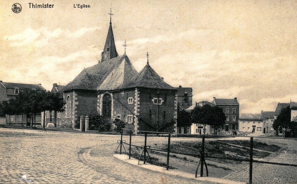 Dès le milieu du XVème siècle, une chapelle est érigée à l’emplacement de l’église actuelle de Thimister. Au début des années 1600, une première église, comportant une tour et une nef, la remplace. Très vite, le curé Bernard de Harzé constate que son église devient trop petite pour accueillir tous les fidèles. Il fait démolir cette première église et édifie de 1618 à 1621 une nouvelle église de style baroque qui compte cette fois trois nefs. La tour de l’église primitive est conservée. L’église sera consacrée le 21 septembre 1620, le jour de la fête de saint Mathieu.