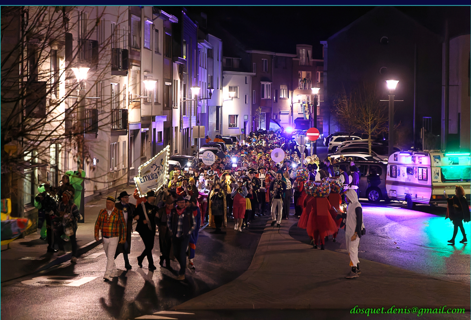 Départ 20 h : sortie masquée de la « ROYALE MALMÉDIENNE » accompagnée par la Royale Harmonie « L’Émulation », Stavelot (M. Thomas Piette ) – ( départ Café de la Gare )