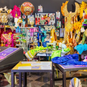 Si la présente exposition offre une seconde vie à ces costumes, notons que, ne pouvant être portés qu’une seule fois, ils sont, normalement, détruits après leur seule utilisation et donc renouvelés chaque année, créés pour l’occasion, dans le respect du thème annuel de l’école de « samba » concernée.