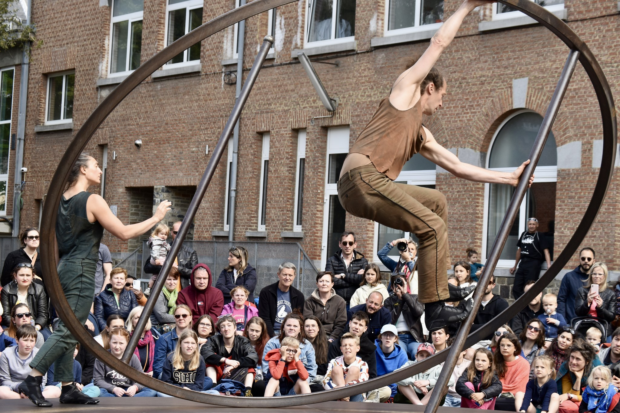 Grâce aux photograpies de Murielle Lecocq, retrouvons l'une de ces companies, "Underclouds", qui se produira une dernière fois, ce samedi 20 mai, à 16h15, dans la cour de l'école "Notre-Dame", à l'arrière du "Théâtre royal".