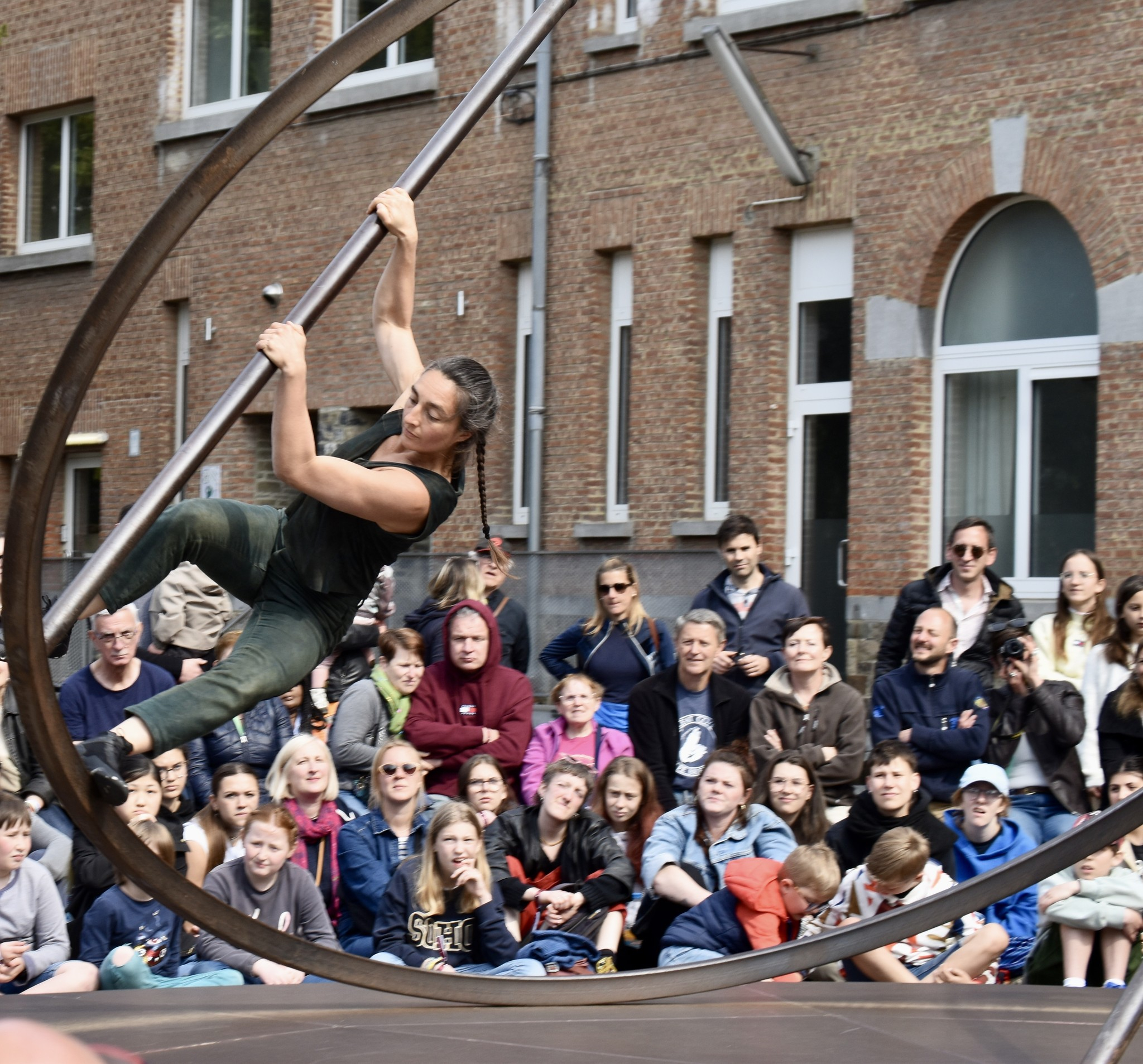 Profitant d'un soleil généreux, dans une chaude ambiance d'un public international conquis, s'exprimant en allemand, anglais, espagnol, néerlandais, français, ..., heureux de pouvoir, à nouveau, faire la fête, se serrant dans les gradins (adieu la distance d'1m50 entre chaque personne, propre à la "Covid"), 65 compagnies d'arts forains, présentent leurs spectacles, dans le cadre de la 27è édition de "Namur en Mai", 300 représentations étant programmées en 3 jours.