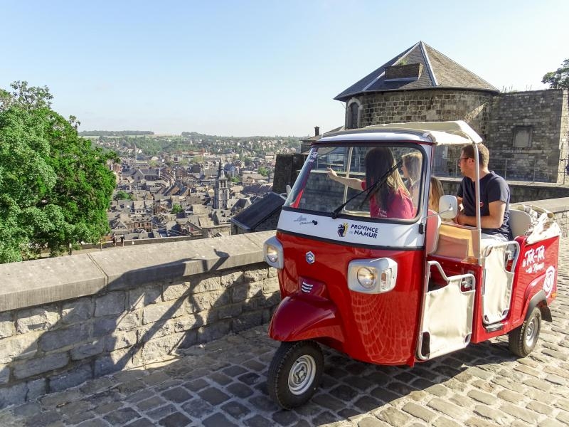 La réservation du "tuk-tuk", non obligatoire, peut se faire via : www.namurinc.be/visite. Deux circuits nous sont proposés, tous les jours, en été, avec des départs, de l'Esplanade de la Citadelle, de 11h à 17h : "La Citadelle se dévoile" et "Merveilleuse Fraise de Wépion".
