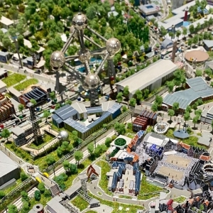 "Pendant trois ans, j'ai recherché l' 'Atomium', d'une hauteur réelle de 102 m, qui, à l'échelle 1/1250è, est haut de 8 cm, 0,8 m/m sur la maquette représentant 1 m dans la réalité. L'ayant trouvé, j'ai pu commencer le travail, qui dura environ 1.700 heures, réparties sur 3 ans. J'aurais voulu qu'elle soit terminée pour les 60 ans de l'atomium, en 2018, mais c'était totalement impossible, tout ayant été fidèlement reproduit, sauf les chaises et tables des terrasses de restaurants, ainsi que les heut parleurs cylindriques, fixés sur trois petits pieds métalliques."