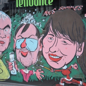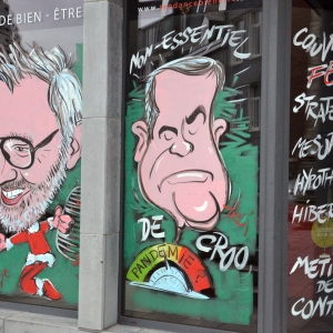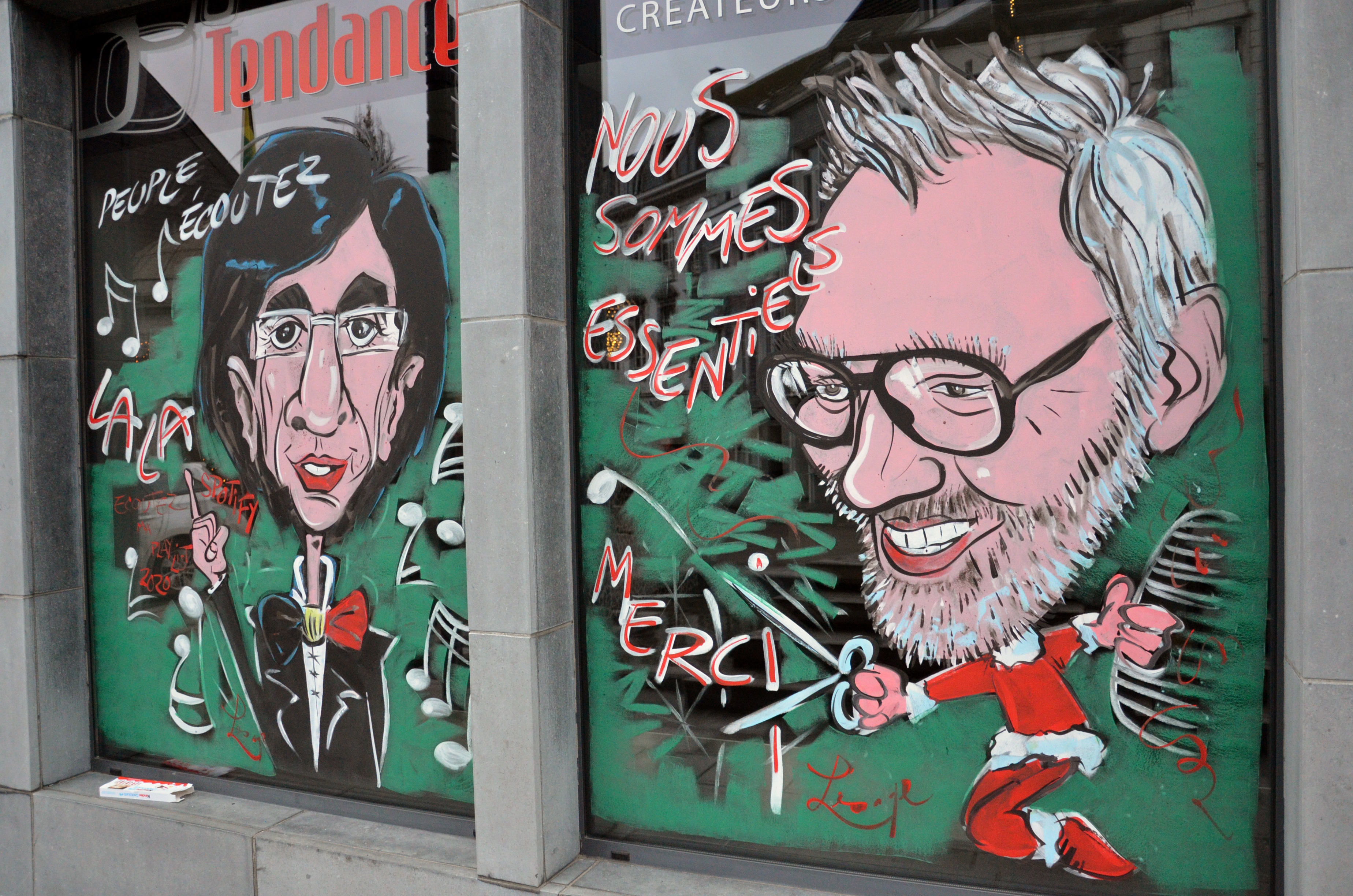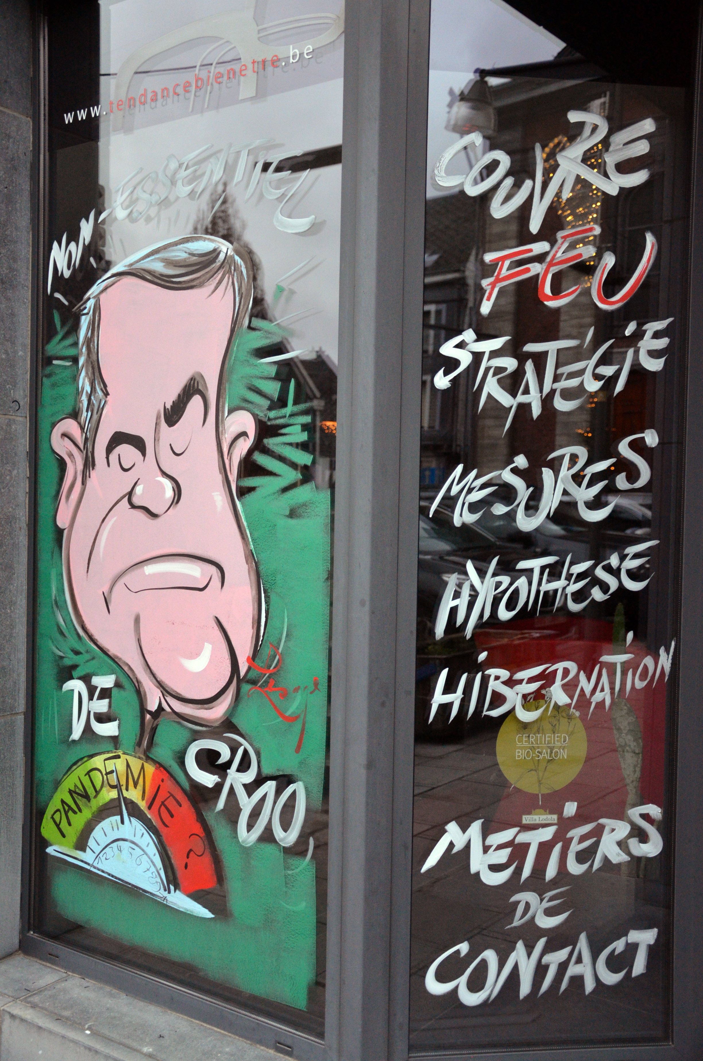 Au salon de bien-être et de coiffure Tendance à Malmedy, les patrons ont toutefois décidé d’apporter une touche d'humour et d’originalité à leur commerce en faisant peindre des caricatures de nos politiques sur toute la longueur de leurs vitrines. Ils souhaitent ainsi manifester leur soutien envers tous les commerçants.
