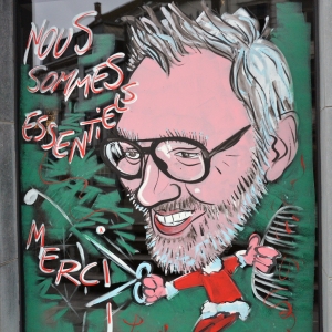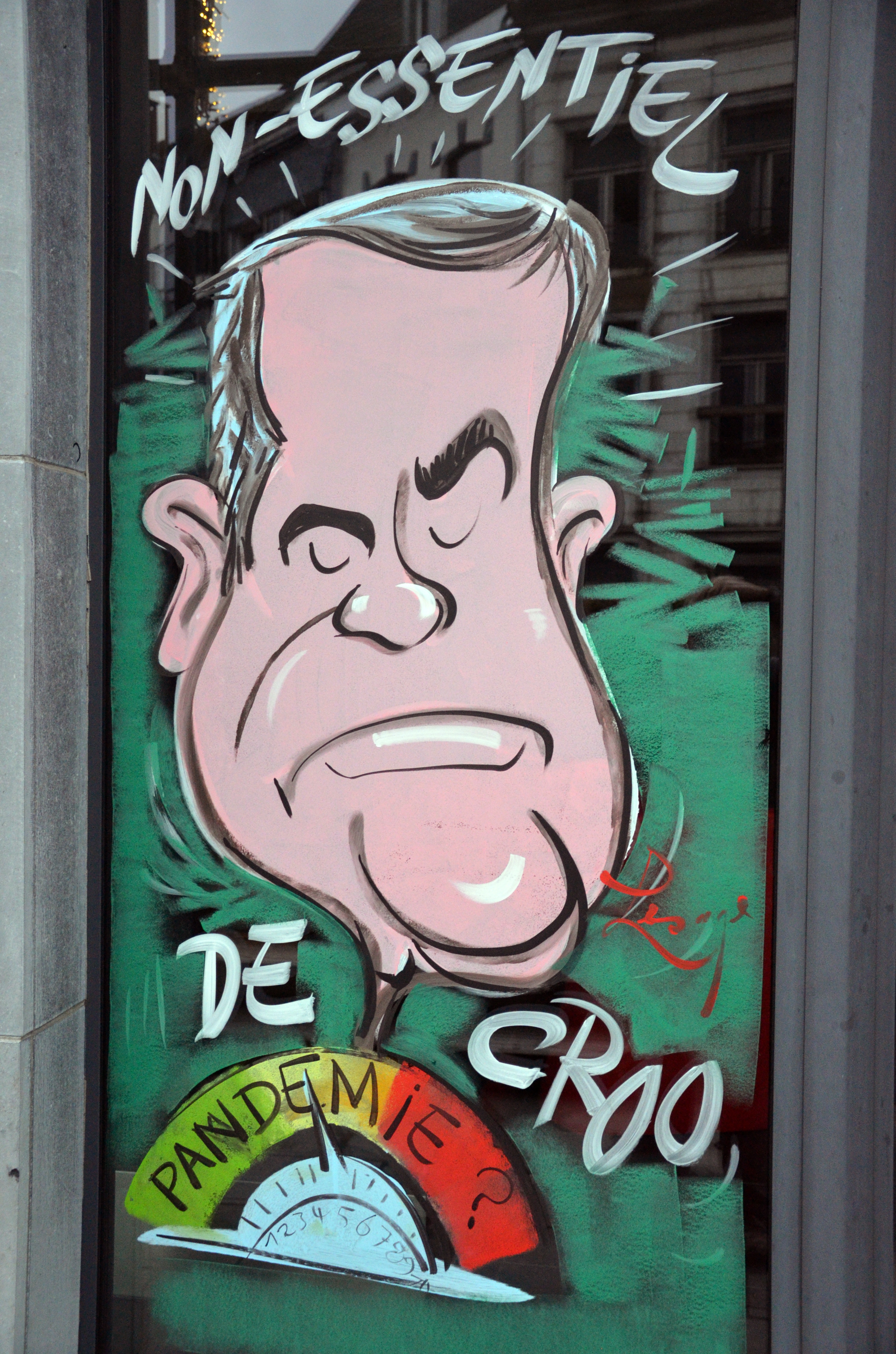 Exit les bonhommes de neige et Père Noël! Cette fois, c’est Pierre-Yves Jeholet, Franck Vandebroucke, Annelies Verlinden, Alexander De Croo ou encore Elio Di Rupo qui habillent la devanture. On y retrouve même le virologue Yves Van Laethem. «C’est mon épouse qui a l’idée des caricatures. On n’avait pas envie de faire passer un message négatif, puisqu’on fait part de nos bons vœux, mais on voulait quand même imager notre détresse.» Serge Metzmacher et sa femme, Carole Stabel, figurent d’ailleurs aussi sur cette fresque, réalisée par le peintre de Houffalize, Jean-Marie Lesage. Cela fait 50 ans que l’artiste exerce ce métier, particulièrement demandé de la mi-novembre à la mi-décembre.