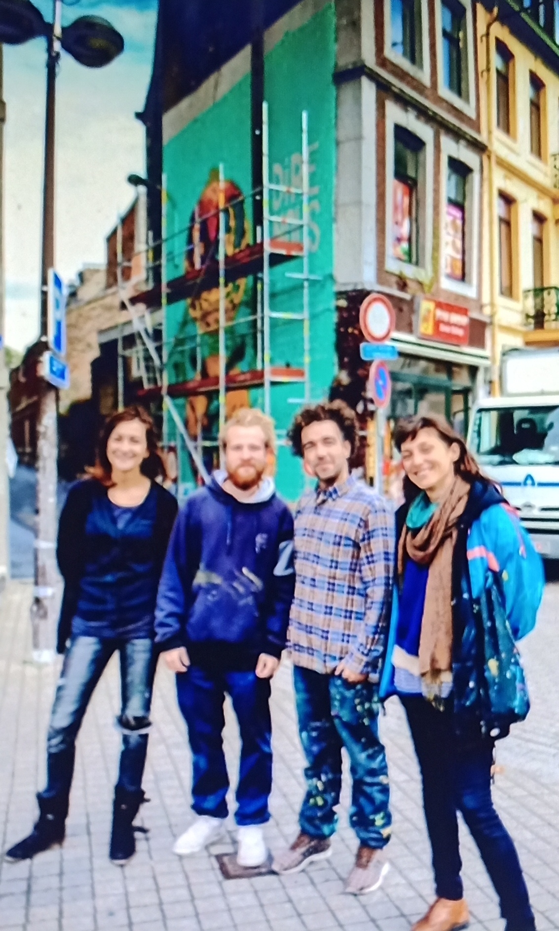 S’en sont suivies les realisations de l’ Enclos des Récollets, du quartier de l’Abattoir, de la rue Spintay, du terrain d’aventures de Hodimont et …ce samedi 17 octobre, une nouvelle fresque « Dire nous » a été inaugurée dans la plaine Lentz en Prés-Javais.
