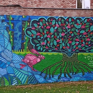 Cette fresque, située sur le mur d'entrée de la plaine Lentz, veut illustrer le panel de couleurs et de multiculturalité du quartier. Une fresque colorée où les artistes y ont écrit un petit mot. « Prés-Javais, c'est ça : une porte ouverte. Une main tendue. Et si tu ne vois pas cette porte ou cette main, alors ouvre une autre porte, tends une autre main. »