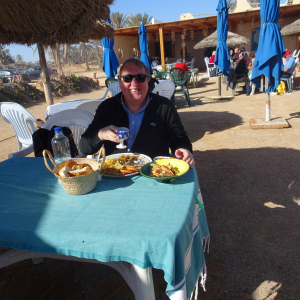 LA LAGUNE BLEUE Jamil Chelba, le taximan (00 216 50 60 19 83) nous montre un autre visage de Djerba sur la côte occidentale. Pour un budget d'environ 35€ pendant 3 heures, il vous conduit à la lagune bleue, un havre de paix et un lieu naturel exceptionnel, apprécié par les flamants roses.. Ensuite, nous prenons la direction de Sidi Jmour, connue pour sa jolie mosquée toute blanche qui domine une longue plage sauvage.