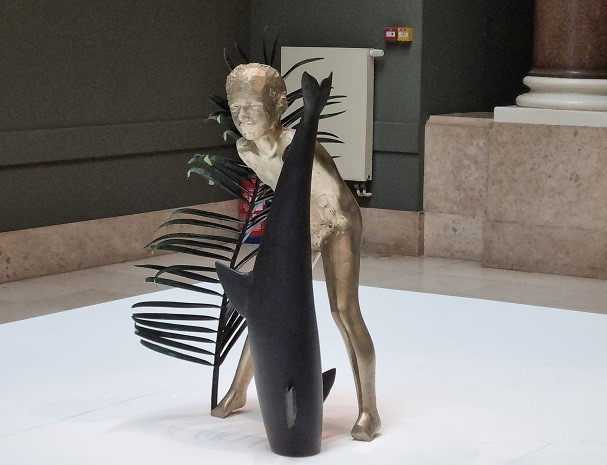 Quel choc se fut, pour lui – qui travaille à Berlin & à New York – de subir l’émigration, avant de grandir au sein d'une culture « pop » globalisée. A Bruxelles, il nous présente un élément architectural surmonté d’un néon, évoquant son lieu de naissance, sur les rives de la mer Noire ; une figure androgyne de conte de fées, flanquée d’un dauphin et de végétation marine, dans un style manga animé ; ainsi qu’un relief au sol, évoquant le reflet du soleil sur des vagues ondulantes ; ces trois installations explorant le caractère insaisissable de l’expérience migrante de sa famille, aussi bien que la nostalgie de cet artiste, qui, trop tôt orphelin de son père, est issu de la diaspora culturelle géorgienne.