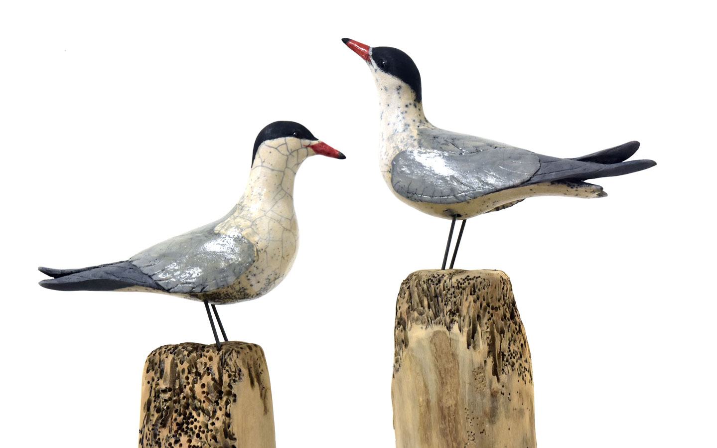 *** « Complicités » (France/Maggy Anciaux de Faveaux, qui, pour les effets et les couleurs de ses sculptures d’oiseaux en bois, utilise la technique du raku pour les effets et les couleurs de ses sculptures d’oiseaux en bois).