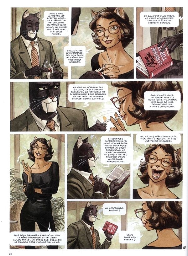 Synopsis : « Par un moche matin couleur sépia, ‘John Blacksad’, détective privé de son état – ou « fouille-merde » selon certains – est appelé par le flic ‘Smirnov’ pour reconnaître un cadavre. Il reconnaît : c’est ‘Natalia Wilford’, une actrice avec qui il a vécu jadis la plus heureuse époque de sa vie. En bon flic, ‘Smirnov’ lui conseille de garder le museau hors de cette affaire. En bon fouille-merde, ‘Blacksad’ ne suit pas ce conseil avisé : un salaud a tué une femme et, par la même occasion, ses meilleurs souvenirs. Il va payer… »