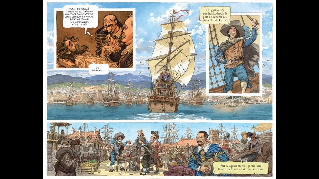Avec ce dernier, nous revivons le Siècle d’Or espagnol et la conquête du Nouveau Monde, territoire riche de ressources et de surprises… Une oeuvre magistrale de plus pour ce brillant dessinateur qu’est Juanjo Guarnido, qui avait fait le déplacement à Bruxelles, pour le vernissage de l’exposition du « Musée de la Bande dessinée ».