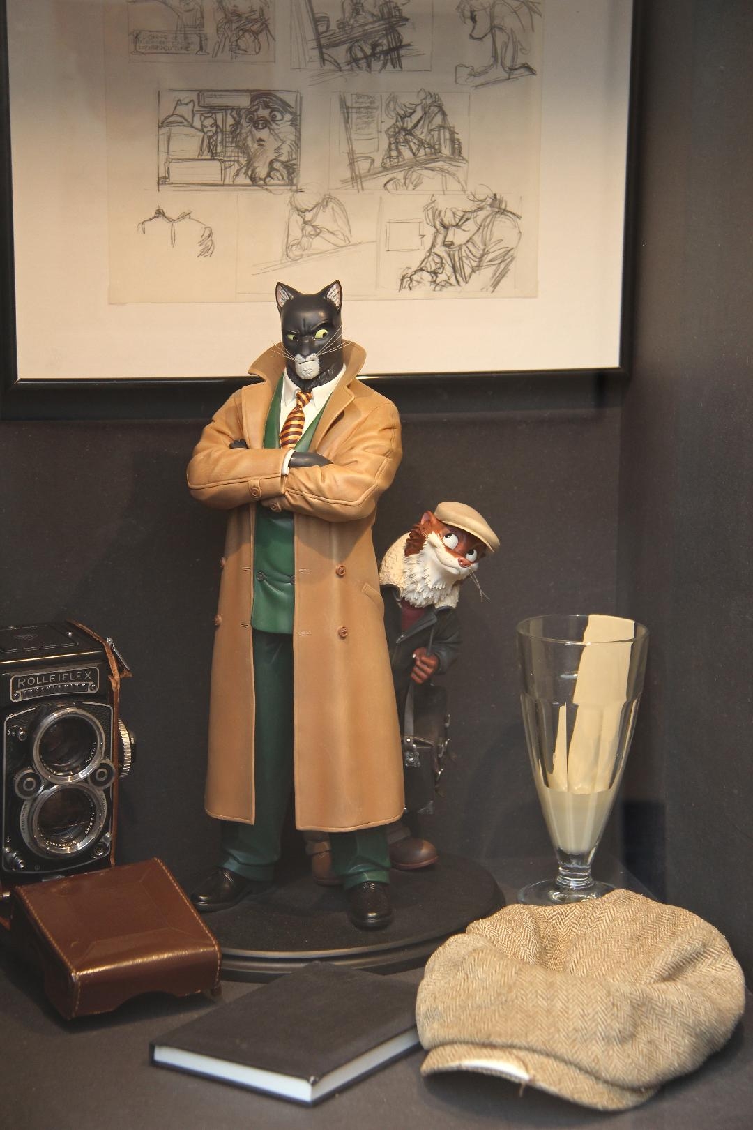 Nous progressons, ensuite, tome par tome, en immersion totale, des reproductions géantes de planches et des couvertures des cinq albums, nous plongeant au sein des différentes enquêtes du détective privé John Blacksad, archétype du héros solitaire, sombre et désabusé, ancien gamin des rues ayant « bien tourné », le duo d’auteurs ayant utilisé un authentique découpage cinématographique pour créer ces enquêtes…