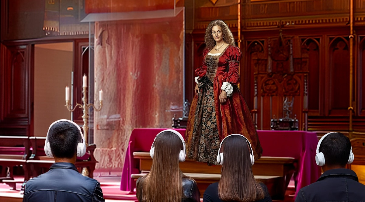 Nous déplaçant dans les différentes salles prestigieuses de l’Hôtel de Ville, en plus de ces rencontres virtuelles, nous rencontrerons des personnages historiques, bien réels, interprétés « life » par différents actrices et acteurs professionnel.le.s, en costumes historiques, étant, ainsi, en immersion dans un décor évolutif, nous interpellant, en nous apportant un regard décalé et ludique, avec des personnages vivants pouvant sortir de peintures ou tapisseries virtuelles,