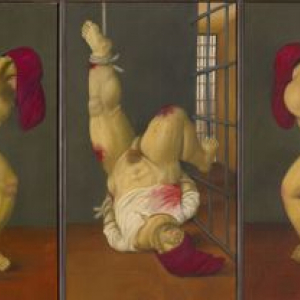 S’agissant de vues de prisonniers irakiens torturés dans la prison américaine d’Abu Ghraib, ce dernier écrit : « A l’époque de Saddam Hussein, à vingt miles à l’ouest de Bagdad, Abu Ghraib était l’une des prisons les plus abominables du monde, avec ses tortures, ses exécutions hebdomadaires et ses conditions de vie abjectes … Pour Botero, impossible d’en rester là. Dans l’avion qui le ramenait en France ‘j’ai pris du papier et un crayon et j’ai commencé à faire des dessins … En arrivant à mon atelier, à Paris, j’ai continué à dessiner et à peindre. C’est devenu une obsession. Pendant 14 mois, je n’ai travailléé qu’à ça, pensé qu’à ça’ … »
