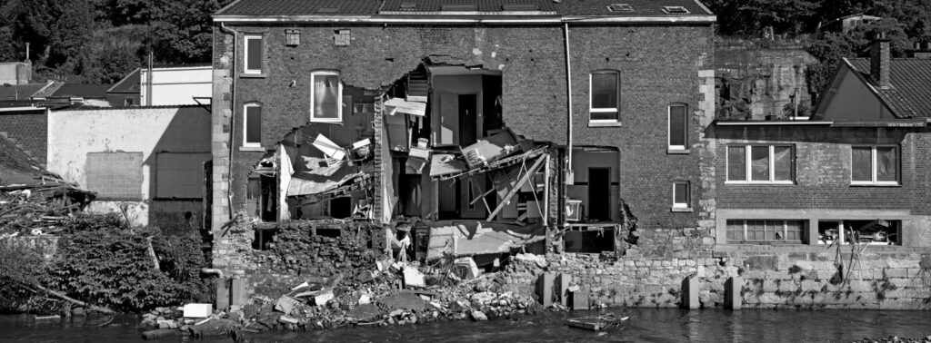 Dès le mois d’août 2021, quelques semaines après les décrues, Gaël Turine a entamé́ un travail photographique « mémoriel », en photographiant les conséquences de ces inondations, dans les vallées de la Vesdre, de la Lesse, de la Lhomme, de la Wamme, de la Hoëgne et de l’Ourthe.