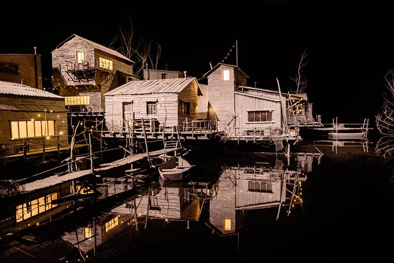 Vient ensuite une salle à l’atmosphère particulière, nous présentant, prêtée par le « Kröller-Muller Museum », une cité lacustre, « L’Implantation » (2016), reproduite à une échelle pas trop réduite, avec ses chalets, ses pontons, ses barques, ses filets de pêche et ses guirlandes lumineuses, évoquant une scène nocturne, la lumière jaillissant par moments, nous aidant à prendre des photos (obligatoirement sans flash). Sommes-nous aux Philipinnes ou à Maracaïbo, au Vénézuela ?