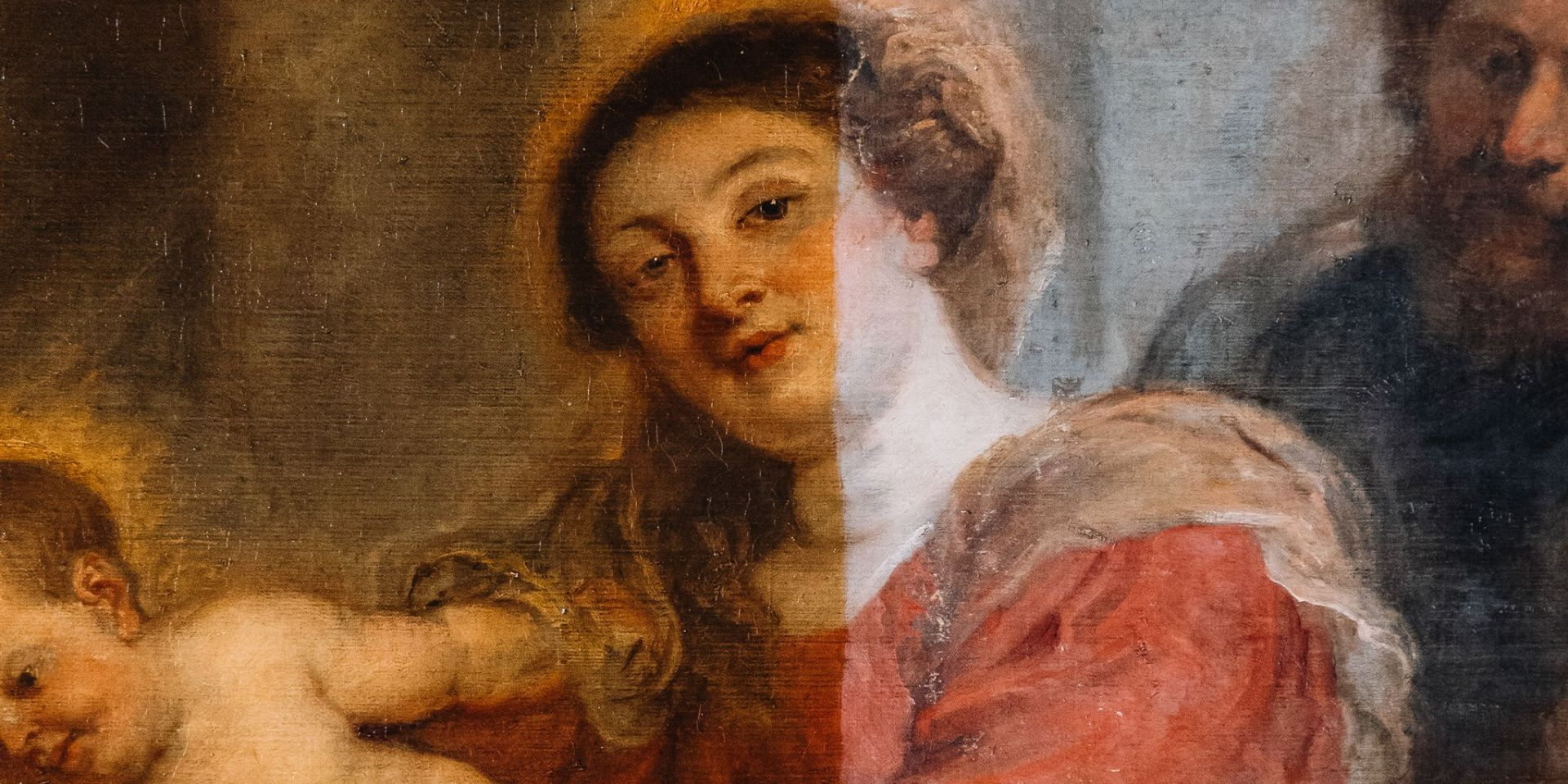 A l’occasion de notre passage au second étage, découvrons le « Studio Rubens », la peinture à l’huile « La Vierge trônant entourée de Saints », réalisée par l’artiste anversois Peter-Paul Rubens (1577-1640), nous y étant dévoilée, alors qu’elle est en restauration depuis le 25 septembre 2023.