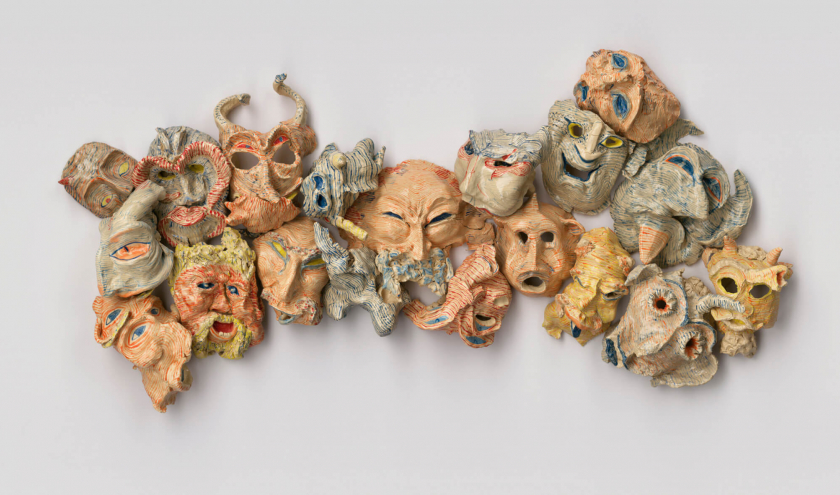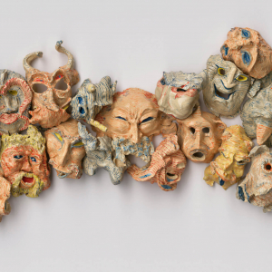C’est cette torsion, cette déformation, qui a tant plu à Peter Depelchin, qui fit cuire ces grimaces d’argile, avant de les peindre et de les glaçurer, les assemblant, ensuite, en une composition, évoquant une petite gravure de l'artiste vénitien Giandomenico Tiepolo (1727– 1804), qu'il acquit pour sa collection d’inspiration, lui qui, natif d'Oostende ne peut nier qu'en visitant, à plusieurs reprises, la maison-musée de James Ensor (1860-1949), son intérêt pour les masques ne pu qu'augmenter au fil du temps.