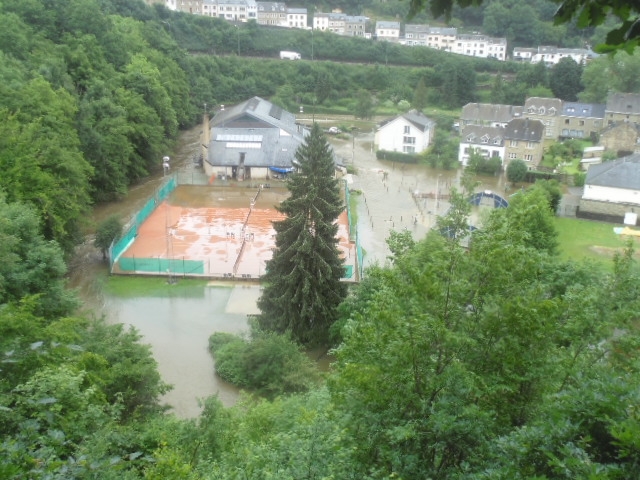 Les courts de tennis sont partiellement sous eau, de même que le terrain de mini-foot. L'aire de pétanque, n'en parlons pas. Idem pour la plaine de jeux d'Houtopia.