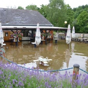 À proximité, la terrasse verte de l'hôtel du commerce en bordure de l'Ourthe peut être qualifiée de lacustre.