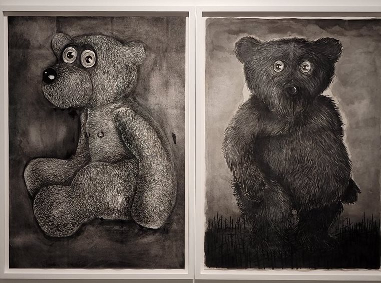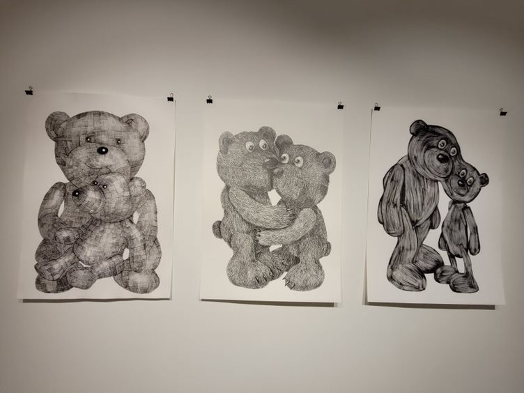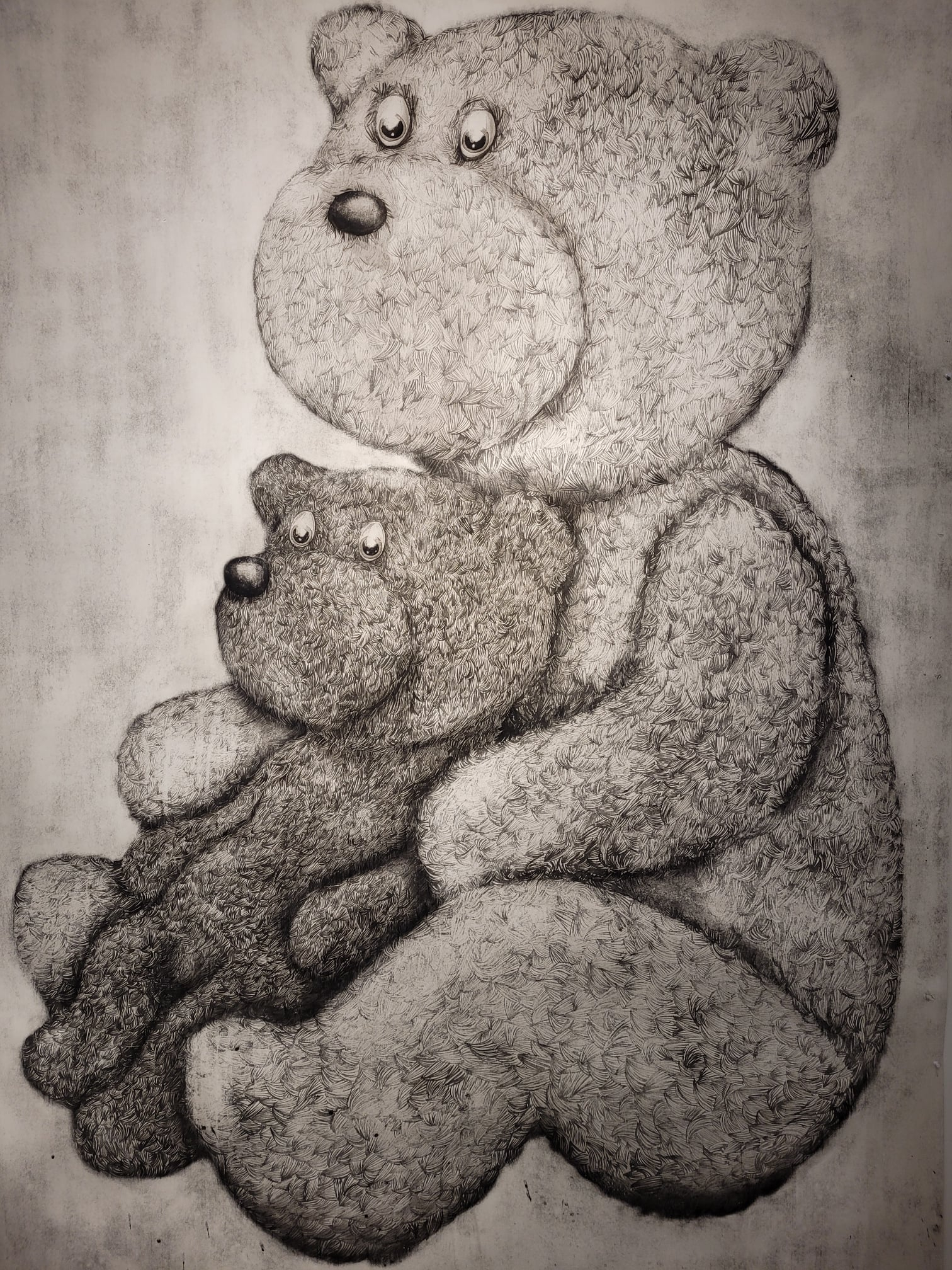 Le thème de l'ours en peluche est peut-être la représentation la plus iconique de l'enfance mais ici une dimension particulière lui est conférée, "L'Attachement", les gestes simples d'amour.