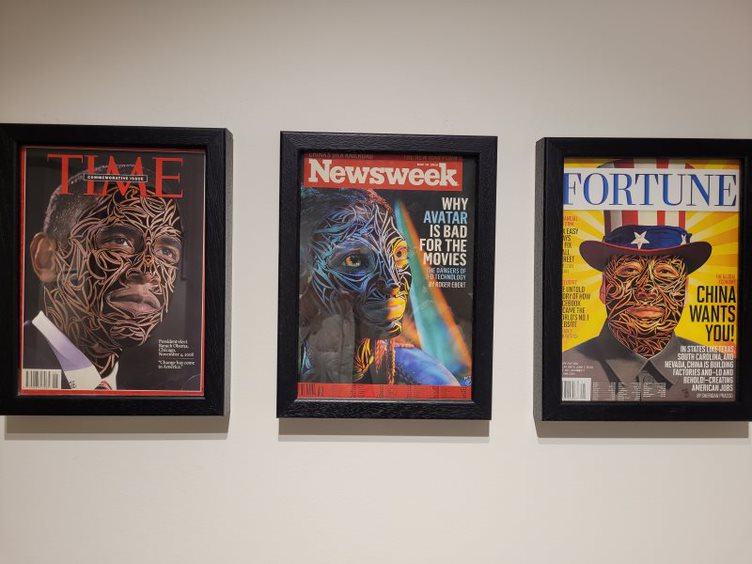 Tatouant les oeuvres d'art d'un trait fluide se propageant comme des racines en réseau veineux sur des objets ou figures mythiques/iconiques les entourant, les enveloppant et les couvrant pour faire ressortir leurs formes et plonger le spectateur dans une vision nouvelle de ses images familières, qui ne laissaient plus en lui que l'impression du déjà vu.