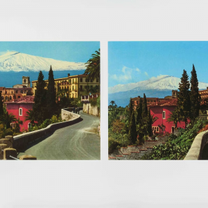 De son côté, Valérie Mréjen (°Paris/1969) nous propose ses diptyques décalés, alors que Nicole Gravier (°Arles/ 1949) s’est photographiée sur les sites les plus clichés. Quant à Michel Peetz, professeur d’arts plastiques à l’ « IATA » (« Institut des Arts, sciences et Techniques Artisanales »), à Namur, il utilise tous les codes du genre pour vanter Charleroi, Namur ou la Fête nationale belge, collectionneur de cartes postales, il photographie des lieux atypiques, et les reproduits à la manière des cartes postales, mais en peinture et en grand format, sous signature « Pemi », écrite à la manière des anciennes cartes « Iris ».