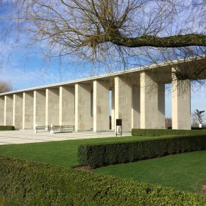 À l'est, une longue colonnade forme, avec la chapelle et la salle des cartes, le mémorial qui domine les sépultures. La chapelle est à la fois simple et joliment ornée. Quant à la salle des cartes, elle contient deux plaques de granite noir sur lesquelles sont gravées des opérations militaires, ainsi que des inscriptions rappelant les exploits des forces américaines. Sur les piliers rectangulaires de la colonnade, figurent les noms de 450 soldats portés disparus. Des rosaces ont été ajoutées pour signaler ceux qui ont été retrouvés et identifiés. Ce cimetière abrite les Américains de deux grandes campagnes : l'avancée de la 1re armée à travers le nord de la France, la Belgique, les Pays-Bas et le Luxembourg pour atteindre l'Allemagne (septembre 1944) ; et la bataille des Ardennes, contre-offensive allemande dans la région du même nom (de décembre 1944 à janvier 1945).