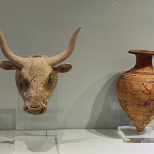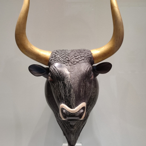 Le sanctuaire montagnard de Zeus, dieu suprême et dieu de l'hospitalité dans la mythologie grecque, se situe sur la colline de Jouktas, à quelques kilomètres de Heraklion. Le serpent et le taureau étaient sacrés. La légende du minotaure relève de la mythologie grecque. La femme du roi Minos, la reine Pasiphaé, mit au monde une créature mi-homme mi-taureau, le Minotaure, fruit de son union avec un taureau sacré. Minos demande à son architecte -Dédale- de construire un labyrinthe ("labrys" double hache en préhellénique), destiné à loger cet être monstrueux. Le roi ordonna que, tous les 9 ans, de jeunes Athéniens soient sacrifiés au Minotaure. Ce qui fut fait, jusqu'au jour où Thésée -le fils du roi d'Athènes Egée- faisant partie du groupe des victimes, fut remarqué par Ariane -la fille de Minos. Celle-ci tomba amoureuse de Thésée et lui remit un peloton de fil qu'il déroula dans le labyrinthe, permettant d'en retrouver l'issue, après avoir tué le Minotaure. Il avait promis à son père de hisser le drapeau à son retour mais il se trompa de couleur et le roi Egée se jeta dans la mer, qui porta ensuite son nom. Un cataclysme aurait mis fin à la civilisation minoenne.