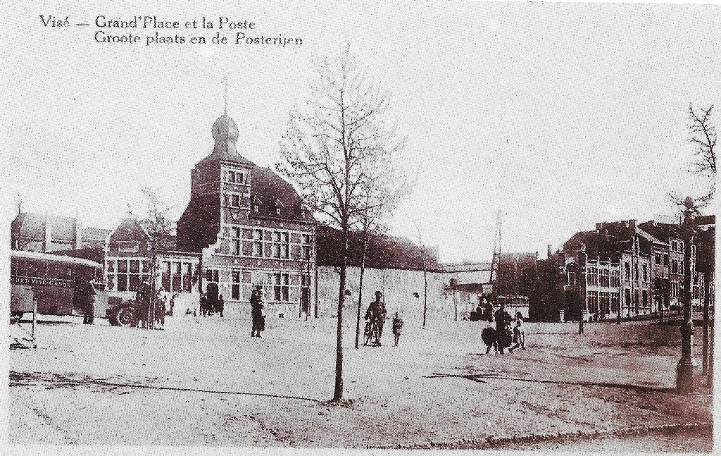 Comme le signale l’ouvrage sur la reconstruction de Visé après la guerre 14-18 et les articles urbanistiques signés J.P.Lensen, édité par le musée de Visé en 2020, c’est l’ouverture d’un nouveau pont ( qui ne s’ouvrit qu’en 1932) et le changement de la direction de l’avenue du Pont qui aboutit sur une nouvelle place. Que s’était-il passé ? : c’est simple, vu le développement de la voiture, les urbanistes d’alors prirent une résolution drastique : raser ce quartier (et donc ne pas reconstruire la trentaine de maisons) et en faire une place carrefour. Du boulevard (nord ou des Arbalétriers), après un petit décrochement devant la poste, la route va se poursuivre vers Mouland et les Pays-Bas. En provenance de la rive gauche et de Tongres, par la nouvelle avenue du Pont à l’ouest, on débouchait sur une nouvelle percée, moins pentue qui fut dénommée par après Avenue Albert 1er et rejoignait la route conduisant à Berneau et à l’Allemagne. On créa par après un ilôt au nord où un kiosque de musique fut placé (emplacement de la statue de l’Arquebusier). Signalons l’installation sous la place d’un abri anti-aérien (qui sera détruit lors de la rénovation de 2022)
