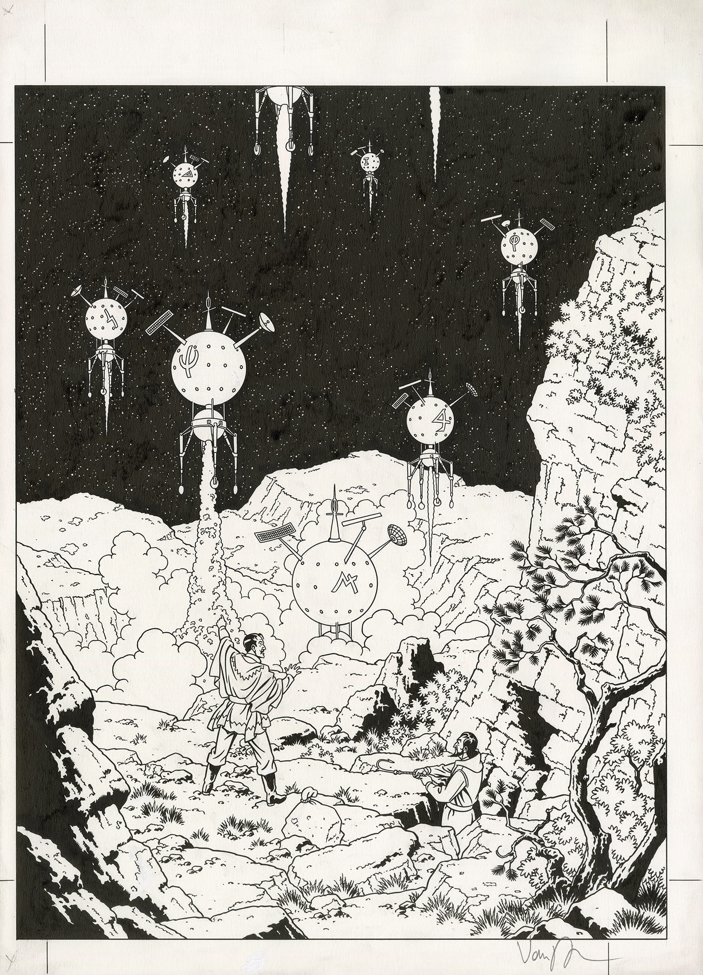 Ouverture : jusqu'au mercredi 24 décembre, le jeudi & le vendredi, de 13h30 à 18h30, ainsi que le samedi, de 11h30 à 18h (en vue d'un achat, sur rendez-vous). Entrée libre. Contacts : sablon@galeriechampaka.com, 02/514.91.52 & 0495/48.58.08. Sites web : www.galeriechampaka.com & https://www.dargaud.com/bd/blake-mortimer.