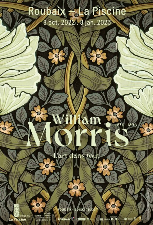 Ouverture : jusqu’au dimanche 08 janvier 2023, du mardi au jeudi, de 11h à 18h, le vendredi, de 11h à 18h, le samedi et le dimanche, de 13h à 18h. Prix d’entrée : 11€50 (0€, pour les moins de 18 ans).Catalogue principal : « William Morris, l’Art dans tout » (Ed. « Snoeck »/broché/208 p./35€). Six autres petits catalogues (« Atelier Gallery Editions » /broché/80 p./19€). Contacts : lapiscine.mussee@ville-roubaix.fr & Site web (avec réservations en ligne) : https://www.roubaix-lapiscine.com/.