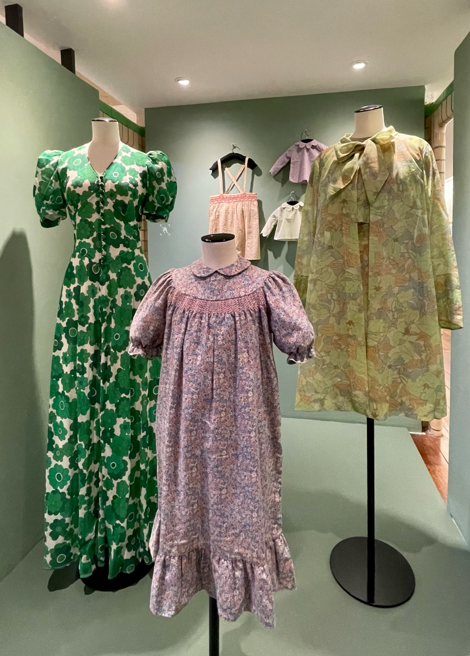 Ainsi, la Ville de Roubaix témoigne tout particulièrement du rayonnement du goût anglais, tel qu’il s’exprime à travers la création textile. « Liberty » (cabine 1/marque créée à Londres, en 1875, par Arthur Lasenby {1843-1917}), tartan et paisley (cabine 2/tartan étant l’étoffe de laine à carreaux, dont est fait le « kilt »/paisley étant le cachemire), Prince-de-Galles, tweed et maille irlandaise (cabine 3), mode anglaise : l’art de l’impertinence (cabine 4/sous l’impulsion de Mary Quant {°Blackheath/1934}, les jupes racourcissent, avant que le mouvement « punk » détourne les codes de l’establishment) et l’invention du sportswear (cabine 5/renforcé par le développement, tout au long du XIXè siècle de sorts spécifiquement britanniques, du blazer des rameurs au cardigan et au short des tennismen, en passant par les polos des joueurs de … polo, sans oublier, pour le plaisir de la haute société, ce qui sied à la pratique de la chasse et de l »équitation), tous nés au Royaume-Uni, ont conquis le monde et continuent aujourd’hui d’inspirer nombre de créateurs étrangers).