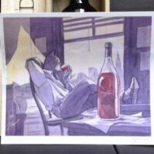 Pour fêter dignement « Blacksad », à l’occasion de ses 20 ans et les 25 ans de la librairie bruxelloise « Brüsel », cette dernière a eu la bonne idée de nous proposer une « Cuvée Blacksad », en provenance d’une commune française répondant au nom évocateur de Saint-Emilion,… ce vin rouge étant, bien sûr, à déguster avec modération.