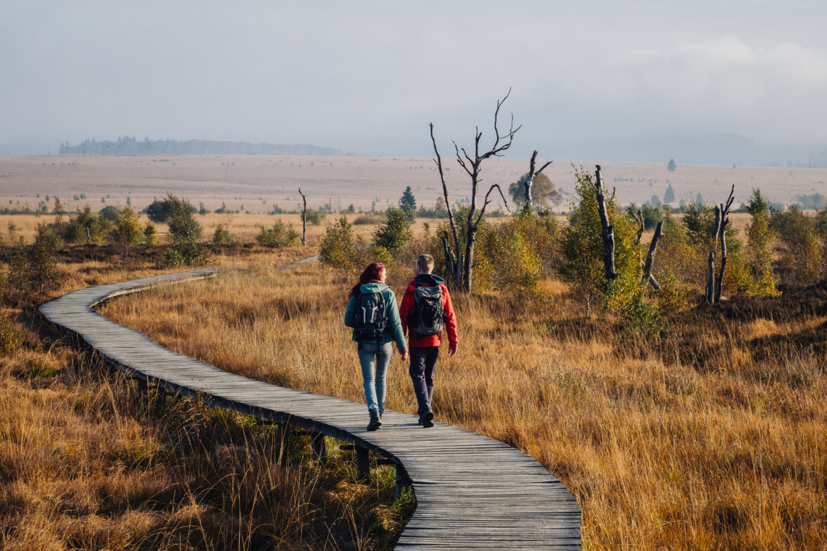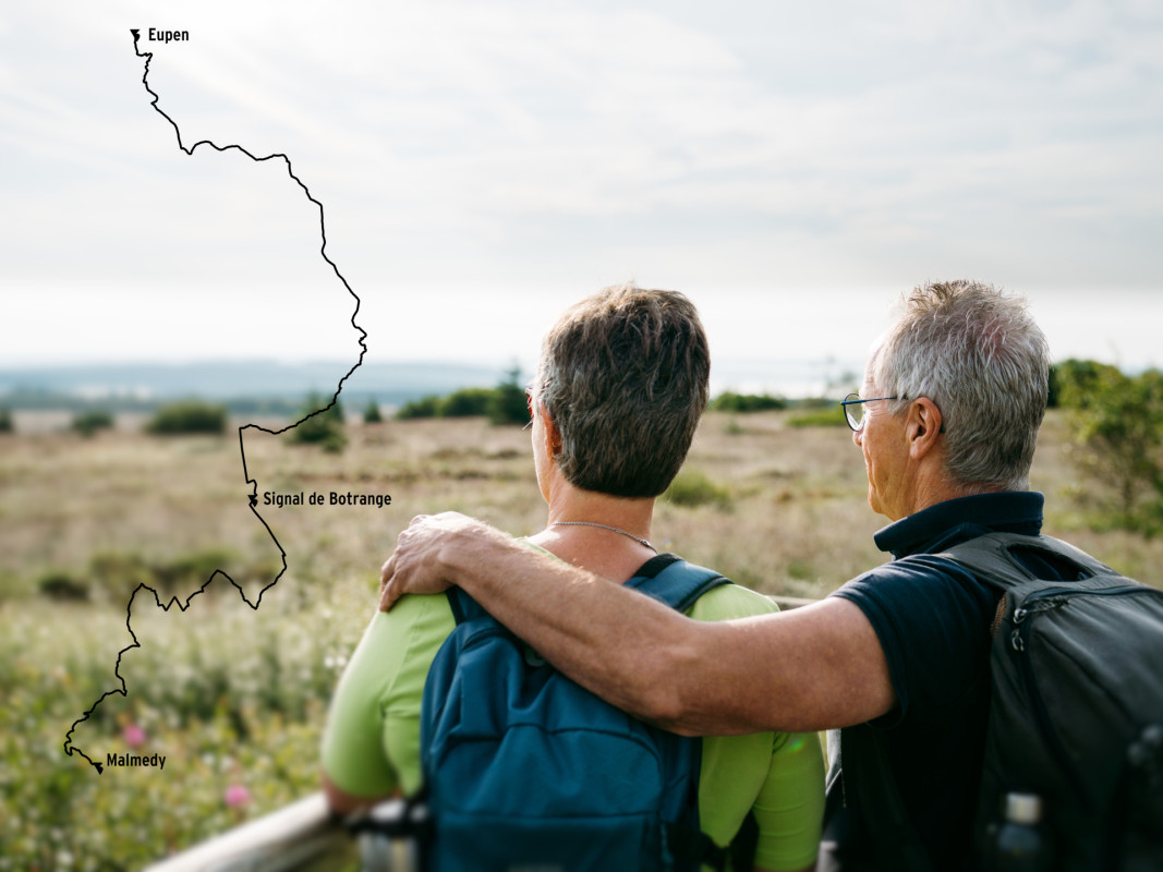 Parcourez ce paysage unique en deux étapes journalières : d’Eupen au Signal de Botrange (24,8 km) et du Signal de Botrange à Malmedy (19,7 km).