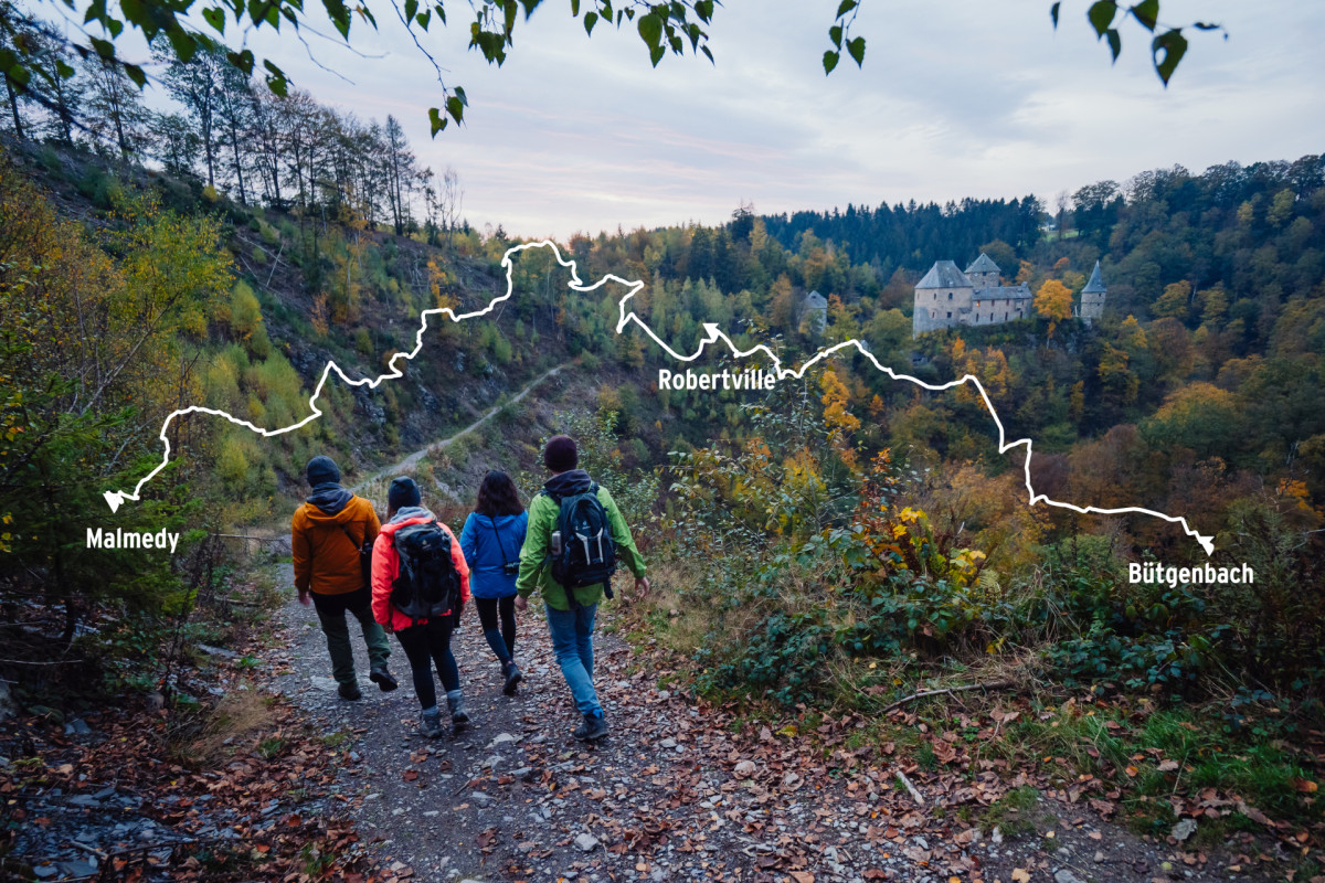 Depuis Malmedy, c’est la romantique Vallée de la Warche qui s’ouvre à vous, vous offrant des vues spectaculaires et une expérience nature profonde. Des crêtes de la Warche, plongez dans la vallée, et admirez le château caché de Reinhardstein. En remontant toujours le cours de la Warche, et en bordant le Lac de Robertville, vous arriverez au point final de la Venntrilogie, le village convivial de Butgenbach.