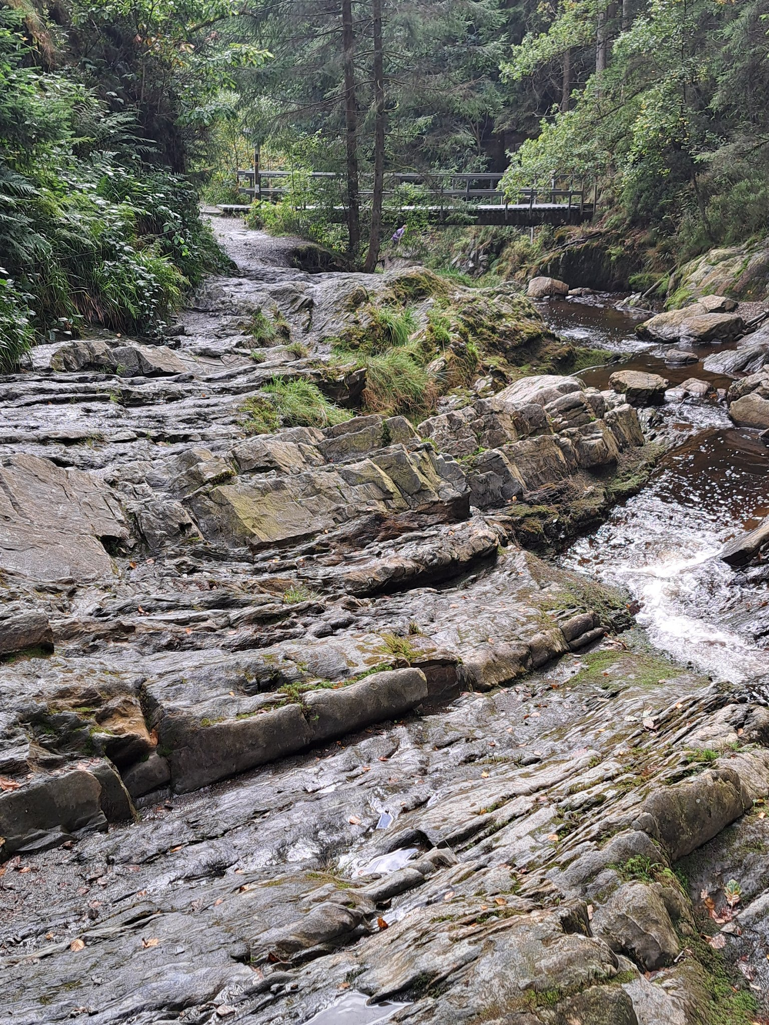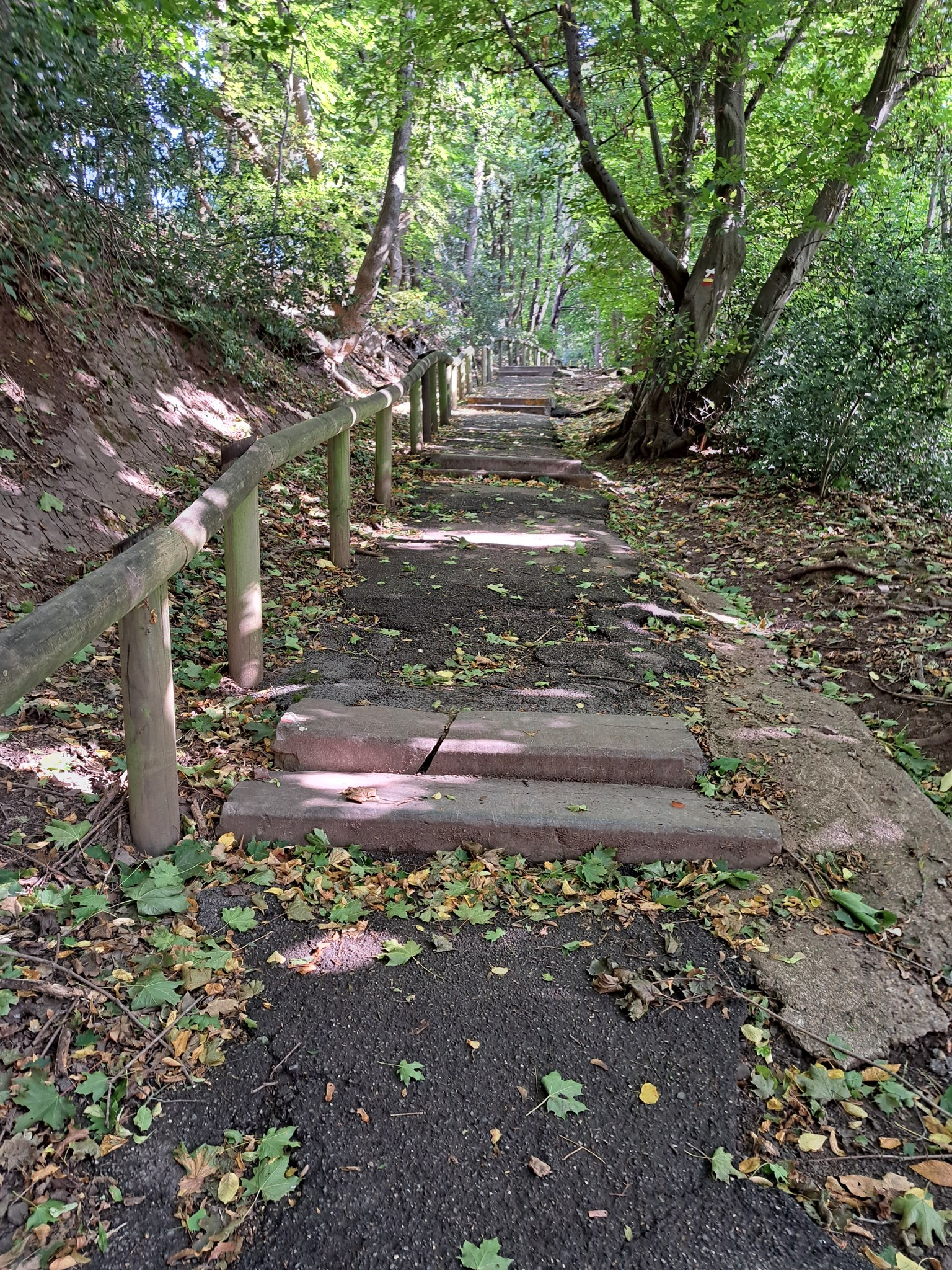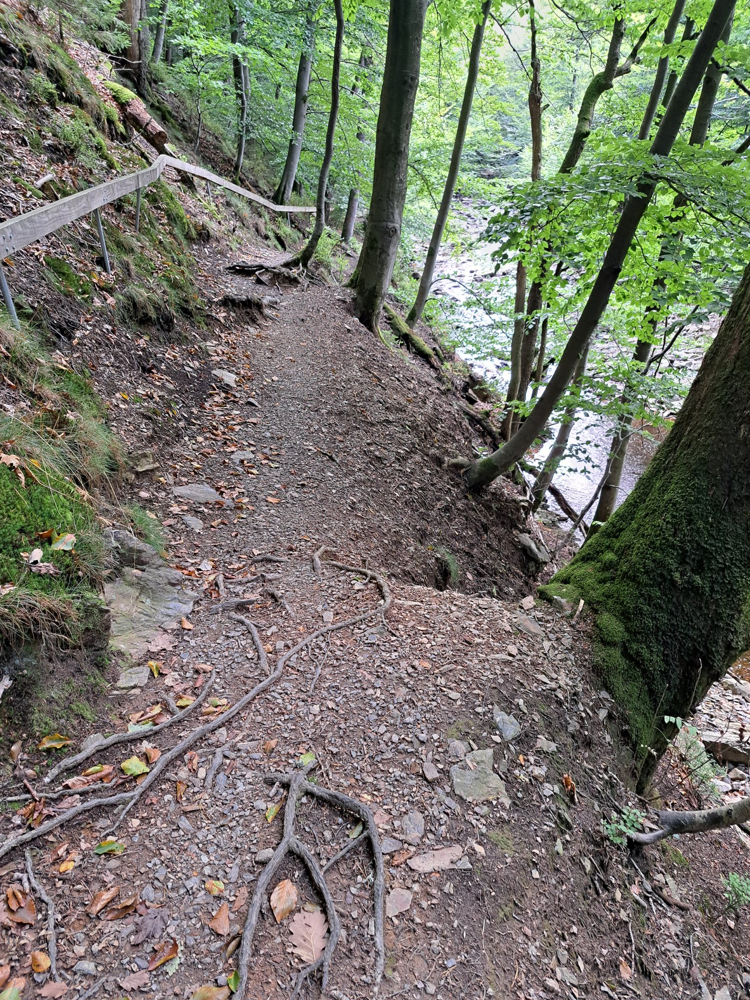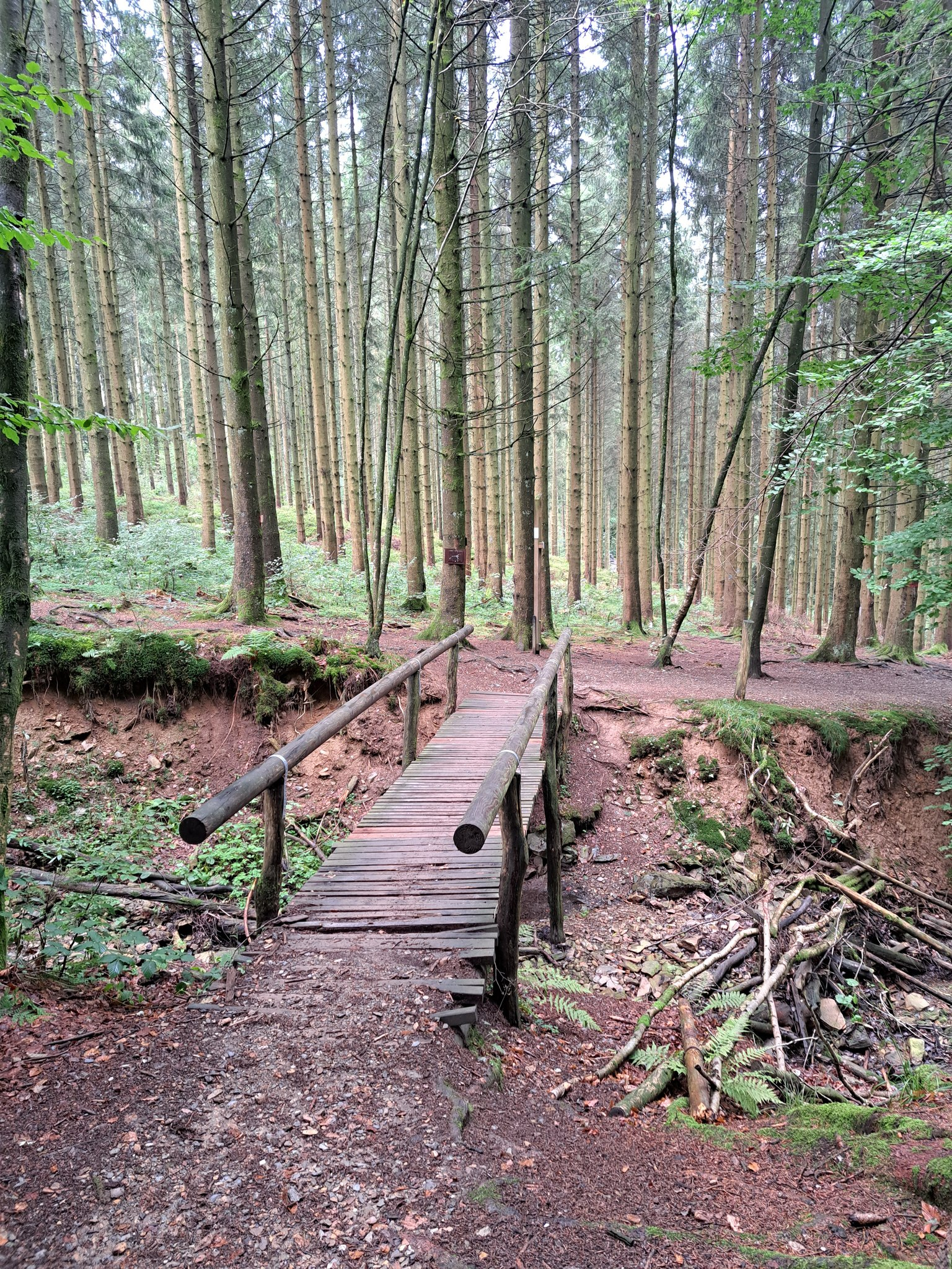 Sortir de la ville haute pour la ville basse, avec des détours qui montent et descendent et pleins de petites surprises puis entrée dans l'Hertogenwald en suivant la Helle ( die Hill ).