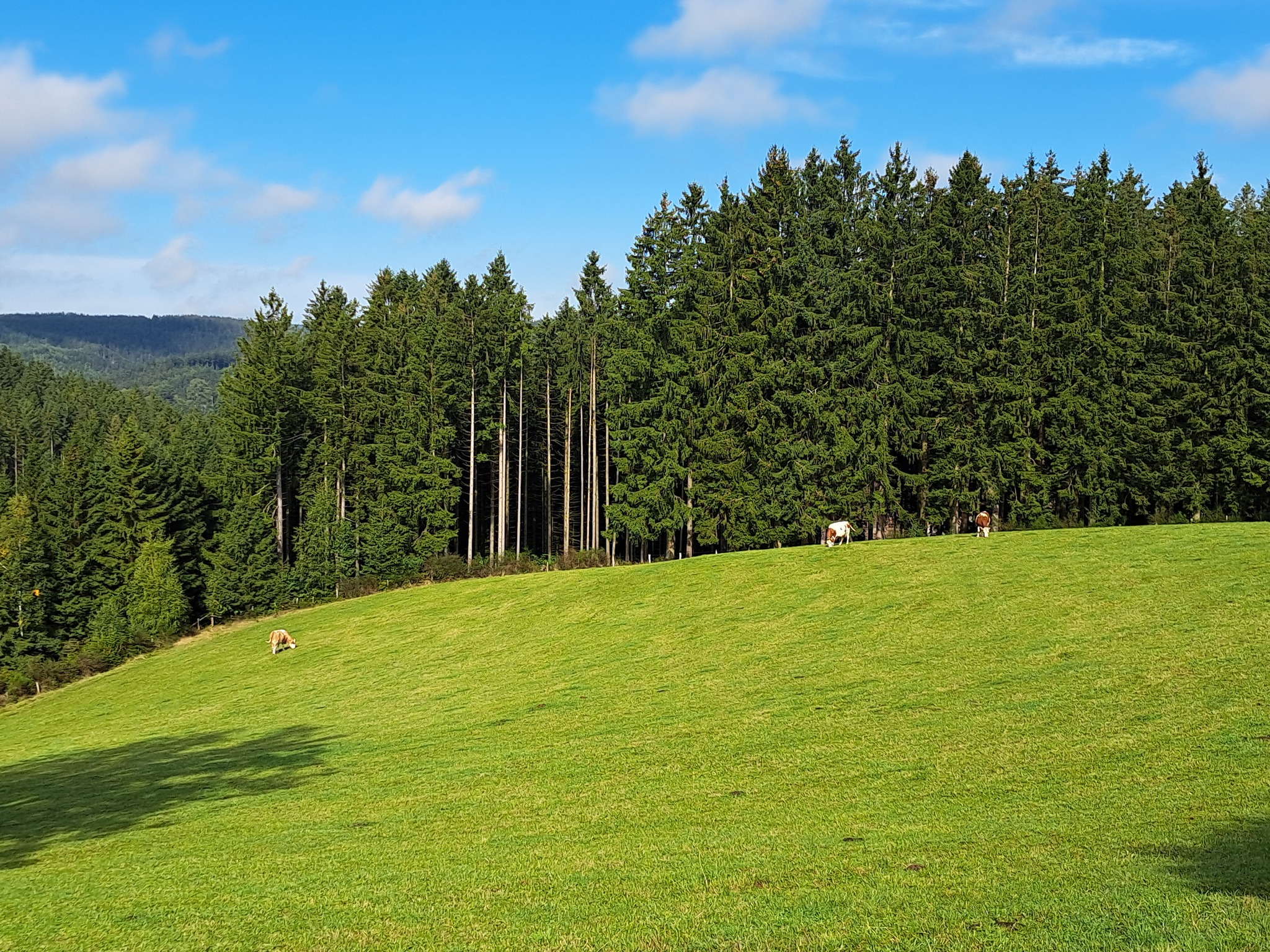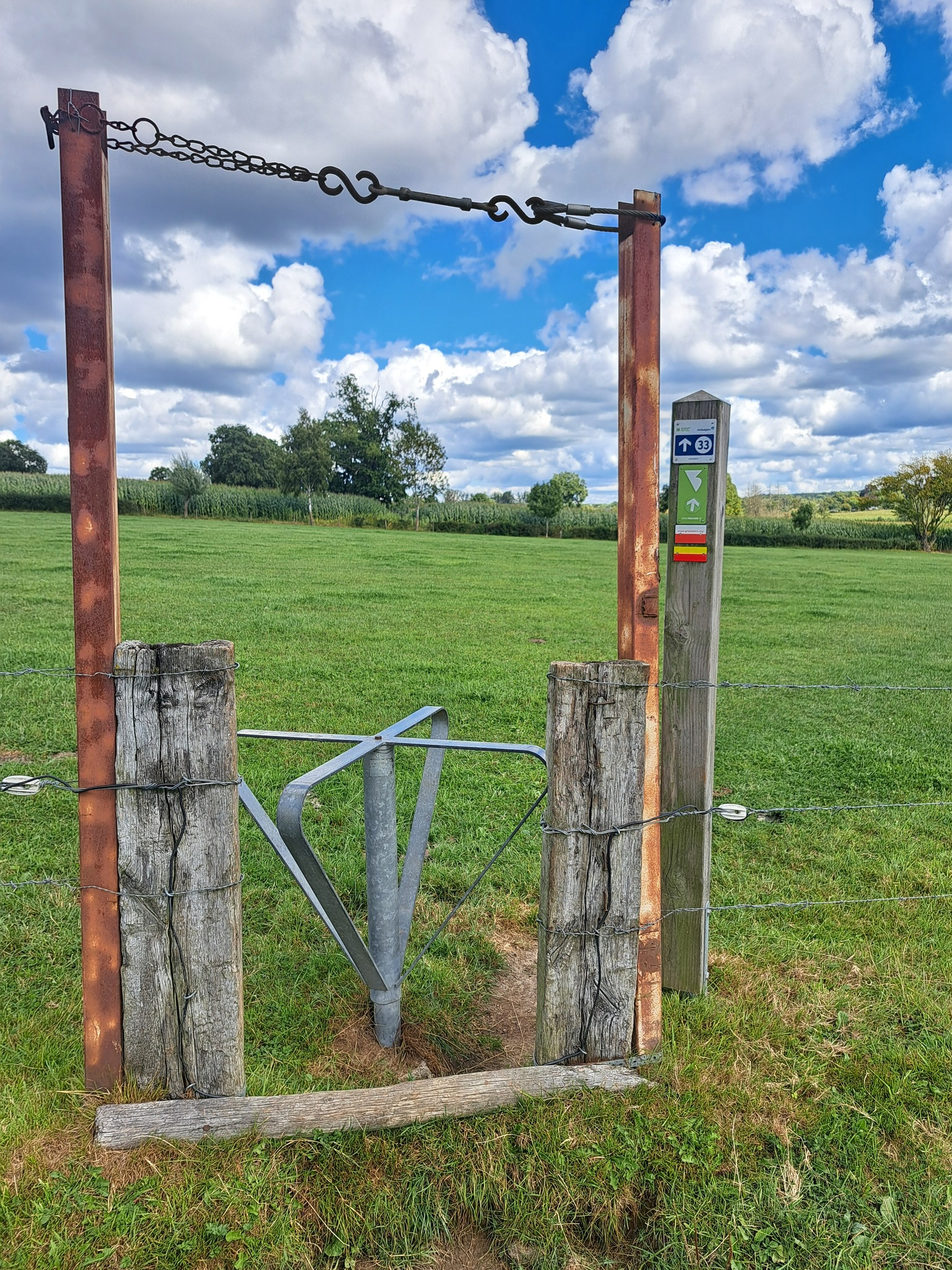 Cette rando se fera principalement à travers champs, merci aux fermiers qui participent en plaçant des échaliers permettant le passage. Certaines prairies ont un peu d'asphalte qui les traversent. Passage par Raeren et son château ainsi que le Hammerbrücke reconstruit en 1998 permettant le passage du Thalis vers l'Allemagne