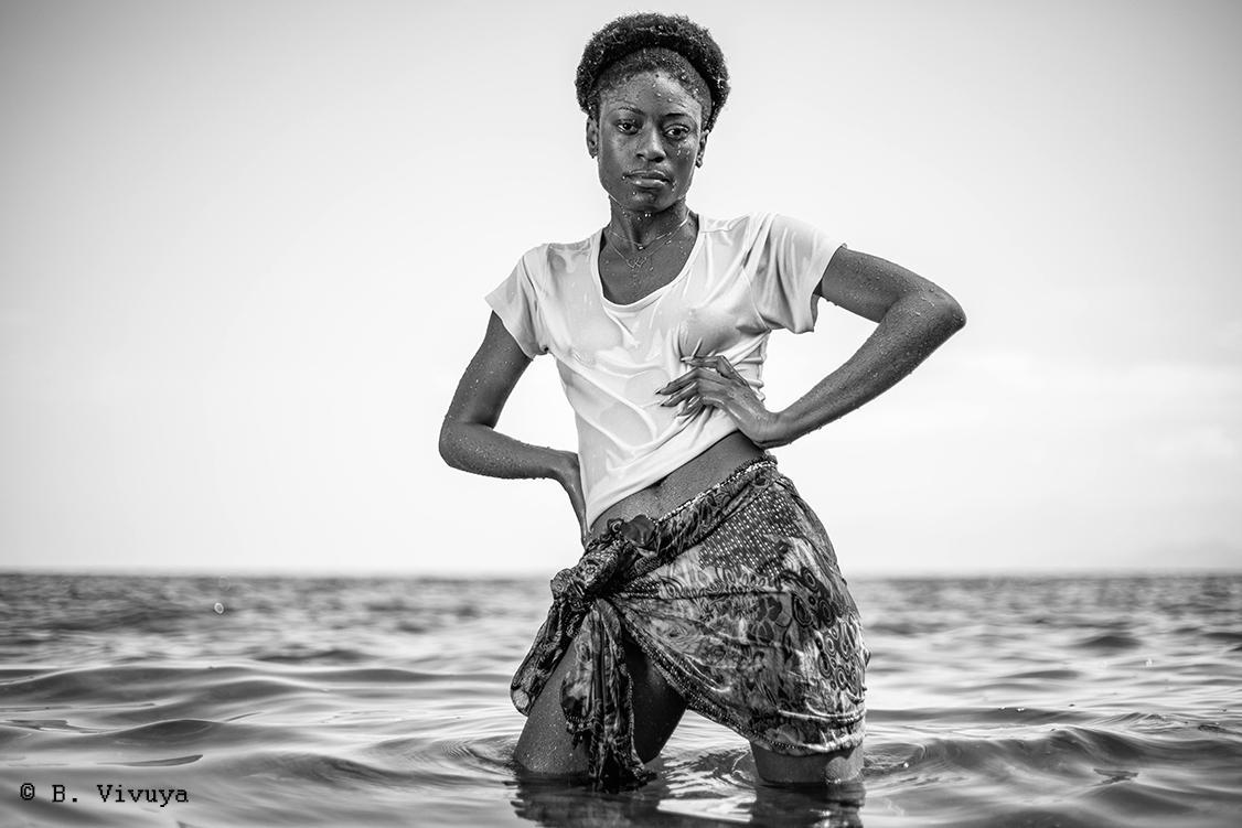 - N'simire Zagabe Sylvie, 28 ans, coiffeuse et esthéticienne, photographiée debout dans l'eau : "J'ai choisi de poser avec des habits qui collent sur mon corps, qui le laissent deviner, mais cachent ce que je souhaite cacher. Je veux mettre en avant les formes de mon corps, ... qui m'appartient et que j'ai choisi de vous montrer ... L'interaction avec la photographe m'a mise en confiance. Je ne m'inquiétais pas du résultat."