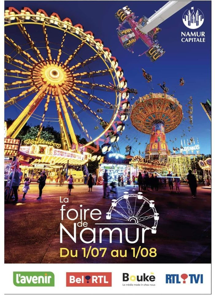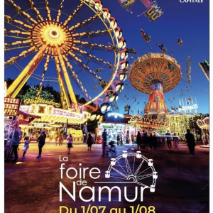 Soulignons que la "Foire de Namur" est accessible jusqu'au lundi 1er août, du lundi au samedi, de 16h à minuit, le vendredi, de 16h à 01h30, les samedis et le mercredi 20 , de 14h30 à 01h30, et le dimanche, de 14h30 à minuit, des réductions de prix étant accordées le jeudi 21 juillet et le lundi 1er août.