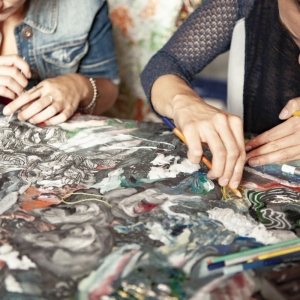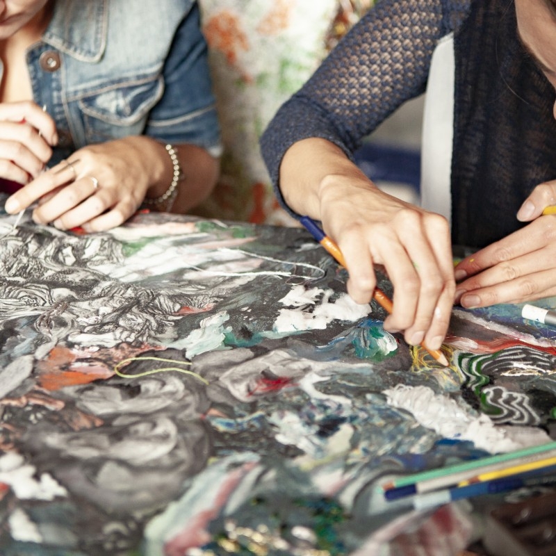 Ayant vécu, toutes deux, 5 années d’études en stylisme, à « La Cambre », les deux jeunes deigners créèrent, en 2012, leur propre marque de mode, sous le nom de « KRJST », qui, en 2014, devint l’actiuel studio de création textile. Elles nous confient leur envie d’avoir voulu créer, au rez-de-chaussée, différents mondes, celui des plages, avec ses cabines de bains, des forêts, de grottes calcaires et de l’eau,… ce qui nous permet, ainsi, avec modestie, de pouvoir, nous aussi,… marcher sur l’eau…