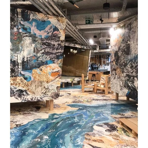 Des espaces communs, aux différents décors design, parfois avec des sièges-balançoires, pour la détente, sont proposés aux personnes venant travailler individuellement, l’accès à l’ensemble de ces espaces pouvant être loué à la journée, un restaurant étant accessible au rez-de-chaussée. Pour Justine de Moriamé & Erika Schillebeeckx, il est impotant d’introduire le « concept de contemplation dans la scène artistique contemporaine, offrant une émotion plus qu’une sensation ». L’athmosphère étant importante pour l’efficacité du travail, elles ont créé un environnement de travail favorisant la productivité.