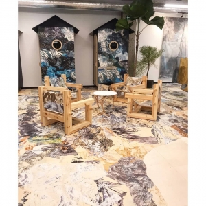 Nous y trouvons un espace de dialogue entre les arts appliqués, le design et les beaux-arts, avec des oeuvres, en bois et en métal, des peintures sur toiles de lin, des photos au collodion humide, des tables de marbre, des bancs sculptés dans le bois, des banquettes en tressage de daim et des tables en velours de soie capitonnée, ces créations étant dues à Jörg Bräuer, Sébastien Caporusso, Anne Derasse, Kaspar Hamacher, Silvano Magnone et Fabian von Spreckelsen.