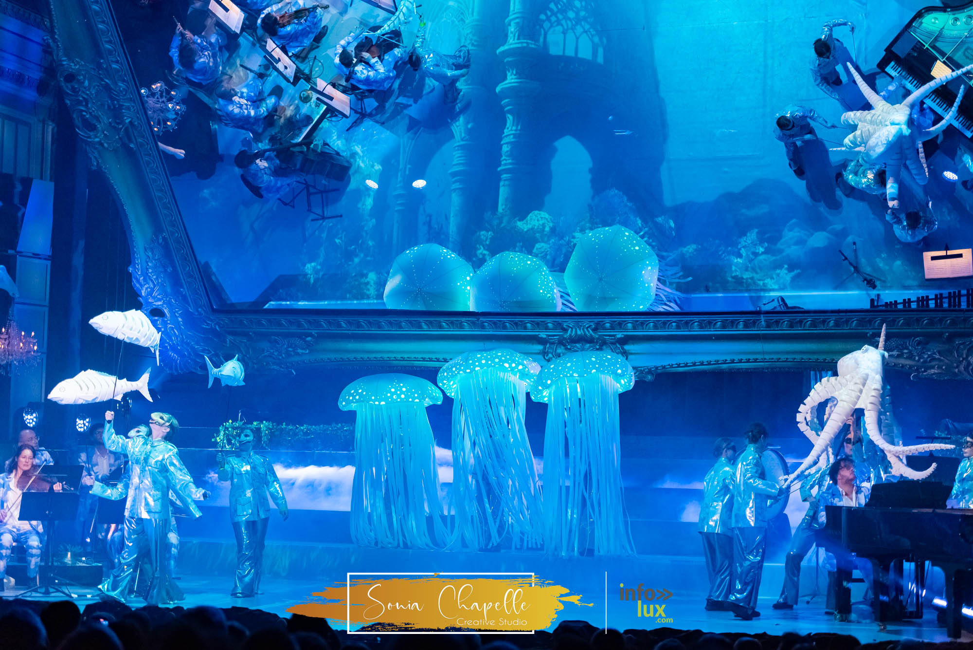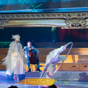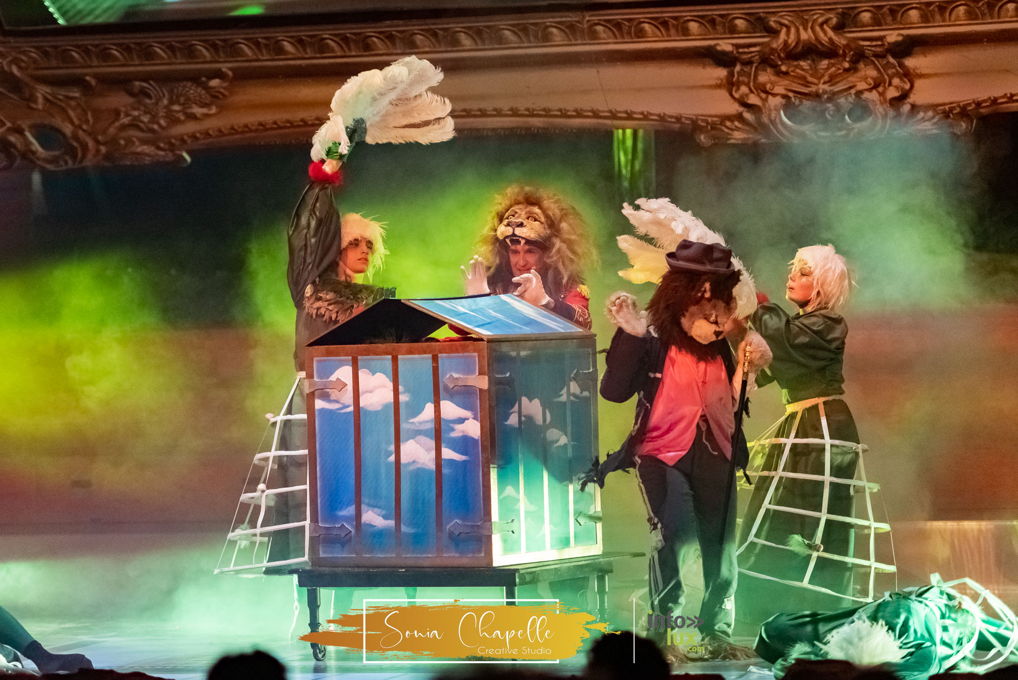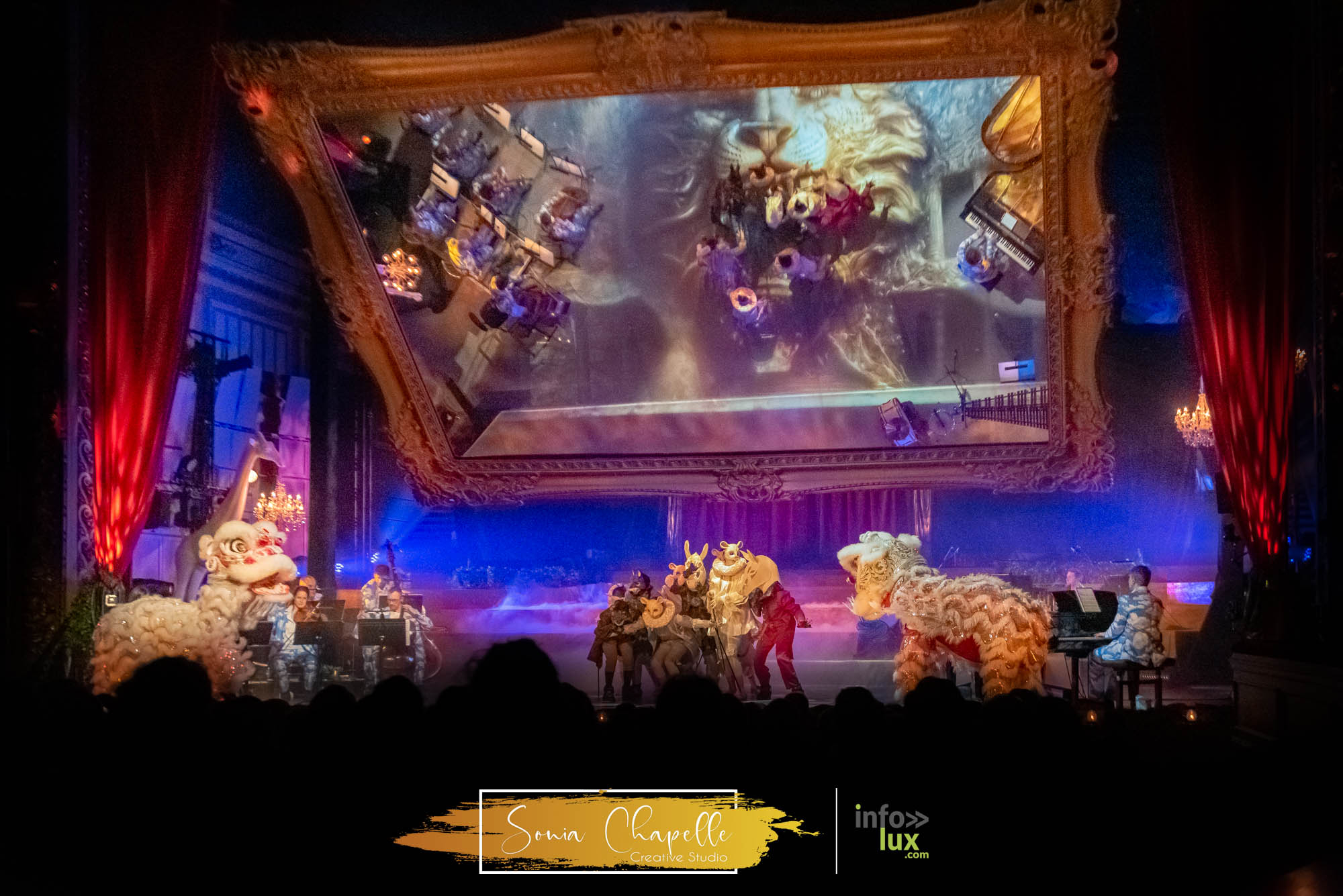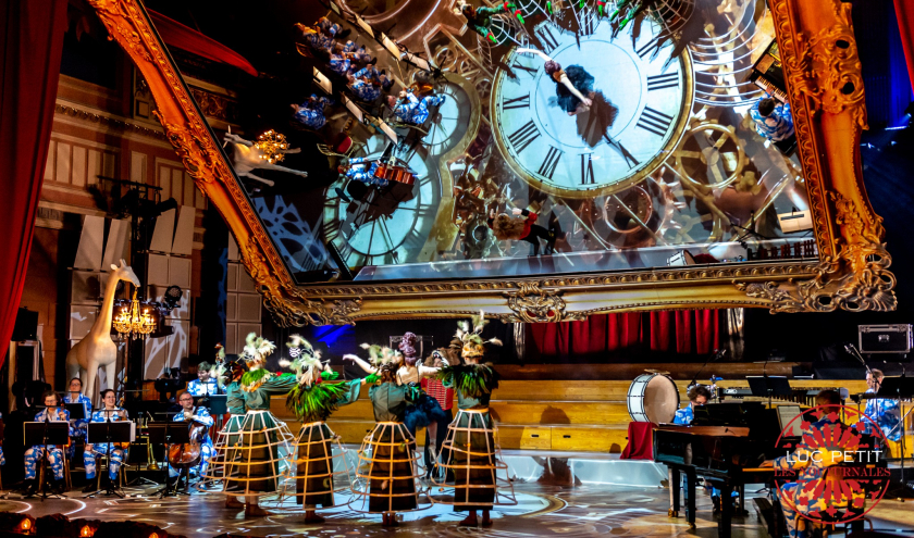Véritable alchimiste des arts de la scène, alliant toutes les disciplines et les moyens techniques les plus innovants, afin de présenter des atmosphères surprenantes, toujours au service de sa démarche artistique et humaine, Luc Petit, grâce, au centre de cette mise en scène, à un miroir géant, qui – tout en réfléchissant les 16 tableaux de ce spectacle haut en couleurs – nous permet de voir et d’entendre le créateur original, en 1886, de ce formidable bestiaire, le compositeur français Charles Camille Saint-Saëns, auteur de douze opéras. Ainsi, ce dernier pu agrémenter le « Mardi Gras » d’un ami violoncelliste, ce qui est bien de saison en ce congé scolaire autrefois nommé « Congé du Mardi-Gras ».