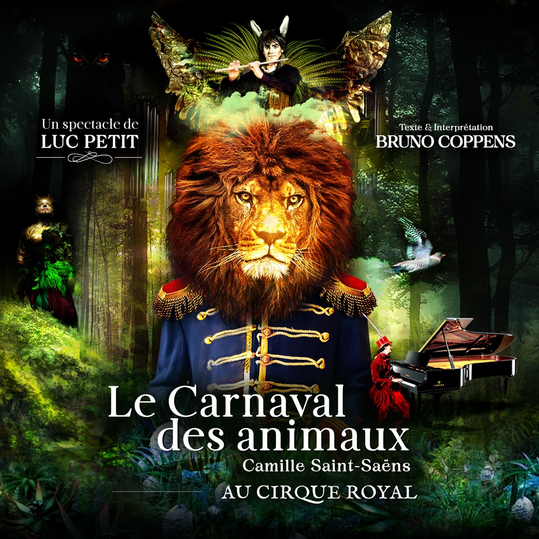 Un an après son immense succès à la « Salle Philharmonique », à Liège, avec 20 représentations archi-complètes, ce spectacle s’installe au « Cirque Royal », à Bruxelles, pour neuf représentations, du 07 jusqu’au 10 mars. Autour de l’œuvre musicale (1886) de Charles Camille Saint-Saëns (1835-1921), les enfants, aussi bien que les adultes, retrouveront toute la magie de ce « Carnaval des Animaux », mettant en scène, autour de Bruno Coppens, une bonne trentaine d’acrobates, de chanteurs, de danseurs, de marionnettistes …, avec les effets spéciaux de la « video mapping », accompagnés par les musiciens de l’ « OPRL » (« Orchestre Philarmonique Royal de Liège »), trois animateurs de « RTL TVI », Sandrine Dans, Luc Gilson & Jean-Michel Zecca, qui prêteront leurs voix aux personnages du Chat, de Saint-Saëns & du Loup.