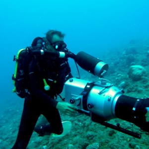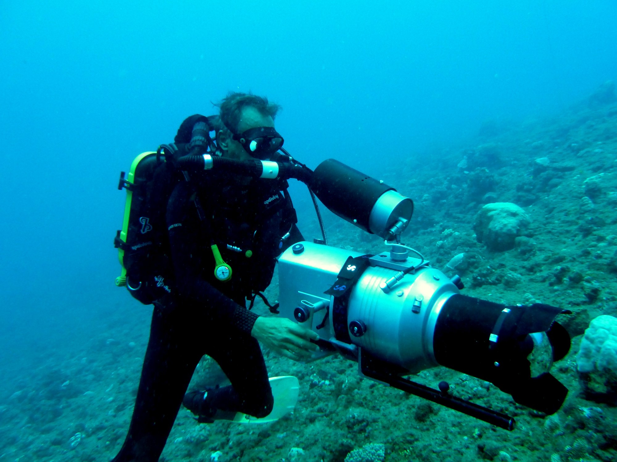 « Il faut passer beaucoup de temps sous l’eau car c’est l’animal qui décide s’il veut bien accepter notre présence. Il y a des jours où vous ne ramènerez aucune image, et d’autres où vous ferez des rencontres extraordinaires. De plus, j’utilise un recycleur, qui recycle l’air, et non des bouteilles de plongée. Grâce à cela, je ne fais pas de bulles ni de bruit. Pour les baleines, les bulles sont synonymes d’agressivité. Quand il y a des compétitions entre mâles, ils font des lâchés de bulles. Les femelles le font aussi quand les mâles sont trop entreprenants. Donc si vous arrivez sous l’eau avec vos bouteilles qui font des bulles, vous ne risquez pas d’approcher une baleine ! »