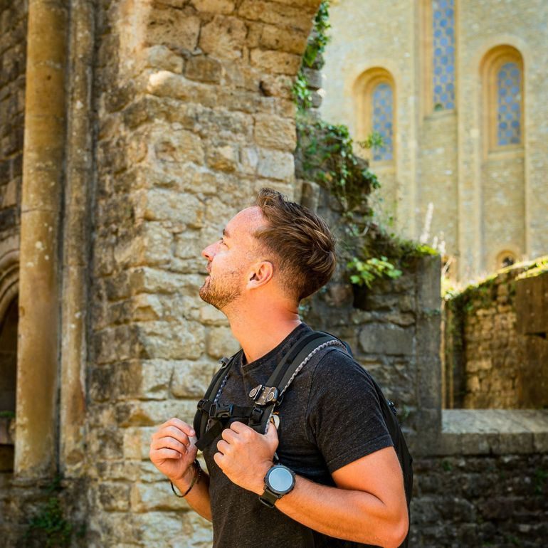 Entre Chameleux et l’abbaye Notre-Dame d’Orval, après le bois communal de Florenville, on traverse une dernière zone naturelle, des prairies et une passerelle. Adrien laisse derrière lui le murmure du ruisseau de Williers pour goûter à l’arrivée au calme au cœur des vieilles pierres de France près de l’ancien cloître de l’abbaye cistercienne. Le Frère Bernard-Joseph l’accueille au pied du grand bassin et l’emmène dans le jardin de pierre qu’il a aménagé en préparant son séjour dans un monastère zen au Japon. Ouvert sur le monde et tolérant, il lui raconte aussi ses journées rythmées par le travail et les cinq offices religieux quotidiens. Suivant la règle de Saint Benoit, les pensionnaires prient et mettent la main à la pâte pour assurer la subsistance de la communauté. Un autre grand ambassadeur de la région et de son abbaye, c’est Jean-Claude Servais, le dessinateur, chantre de la Gaume, de sa nature et de ses personnages attachants. Il a passé deux ans à dessiner ces édifices séculaires et à raconter leur incroyable odyssée, quasi millénaire, dans un double album. Une bande dessinée parue chez Dupuis dans la collection Aire Libre.