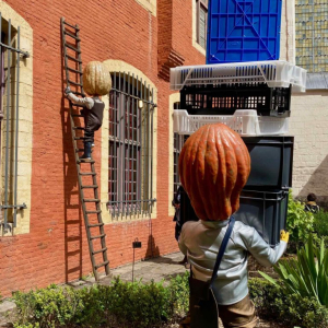 A noter que cette exposition se prolonge dans l’accueillant jardin médicinal de cet ancien hôpital, envahi par une série de jardiniers « Nanitos », personnages sculptés avec des têtes d’artichauds, de choux, de navets, de tomates, …, ainsi qu’à l’extérieur du musée – sis à proximité de l’avenue du … Peuple Belge -, avec une maison, gardée par un « Nanitos » géant, cette installation, dans laquelle nous pénétrons, nous proposant des chaises, un lit, une table et autres meubles, prévus pour accueillir des … géants …