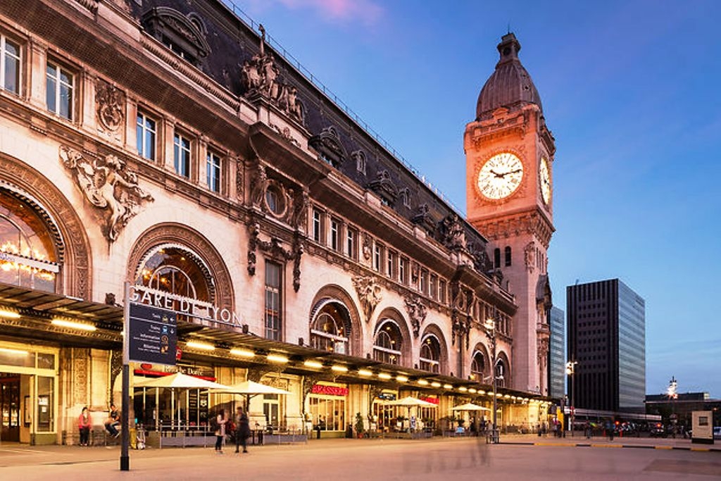 Magnifique, la gare de Lyon fait partie des monuments Belle Époque de la capitale. Sa construction, signée Marius Toudoire, a débuté en 1900, année de la fameuse Exposition universelle. Sa tour de 67 m de hauteur arbore une horloge de 6,4 m de diamètre à quatre cadrans et à chiffres romains. Une merveille ! À ne pas manquer : la grande fresque peinte en 1900 par Jean-Baptiste Olive, représentant des villes desservies par la ligne Paris-Menton. La gare de Lyon abrite également un restaurant construit à la même époque, bien connu : le Train Bleu. Moulures dorées, fresques au plafond, lustres clinquants, fauteuils club… l’intérieur en met littéralement plein la vue !